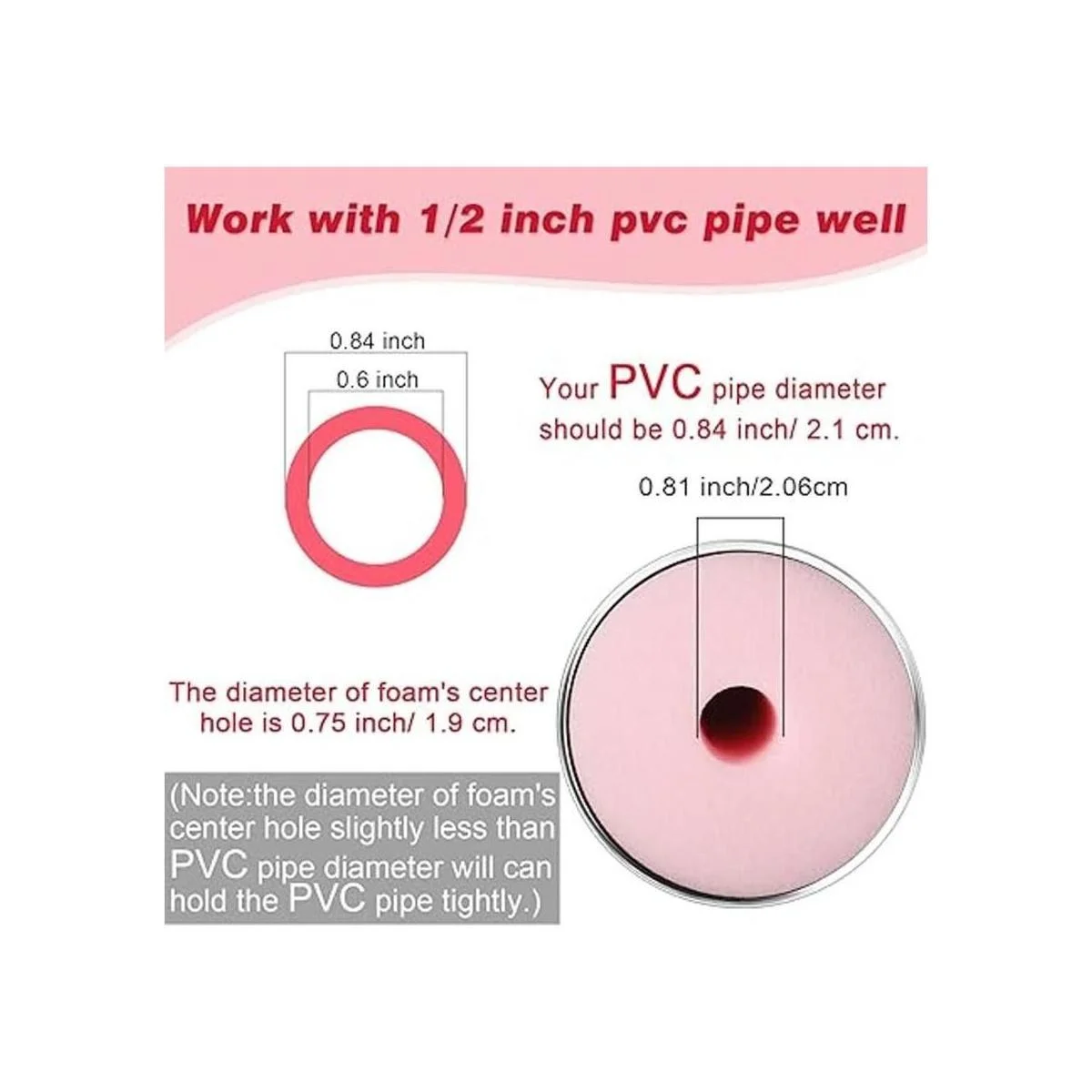 Adecuado para tubos de PVC de 0.5 in: esta espuma volteadora funciona con tubos de PVC de 0.5 in, lo que significa que tu tubo de PVC debe ser de 0.8 in de diámetro; el diámetro del agujero central de la espuma es de 0.7 in; el diámetro del agujero central de la espuma debe ser ligeramente menor que el diámetro del tubo de PVC para sujetar el tubo de PVC firmemente