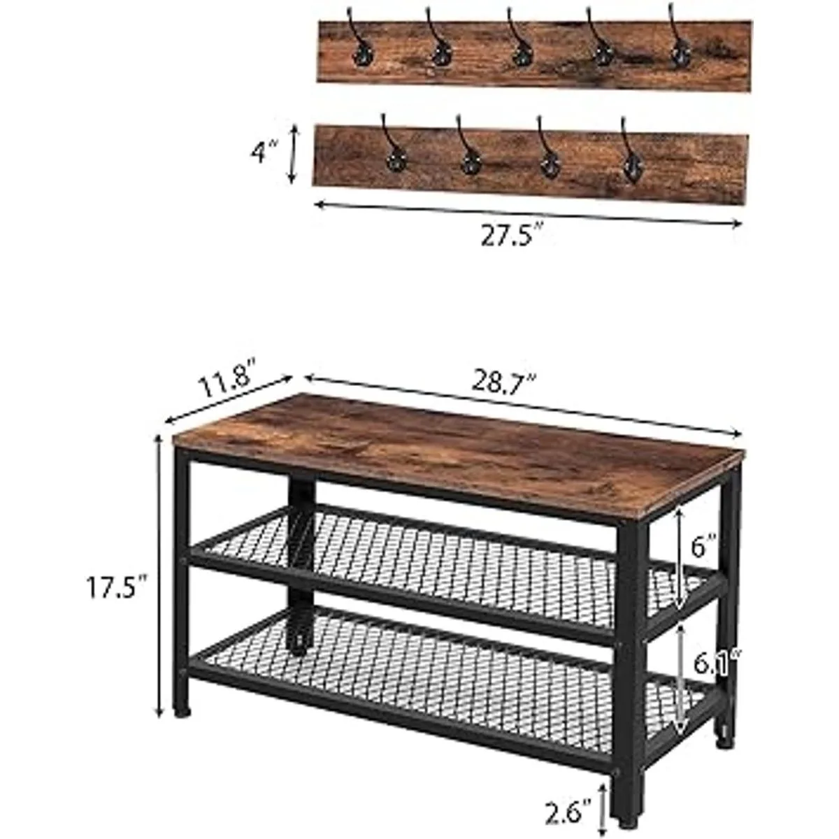 Tamaño perfecto: el tamaño del perchero es de 27.5 pulgadas de largo x 4 pulgadas de ancho, y el zapatero es de 28.7 pulgadas de largo x 11.8 pulgadas de ancho x 17.5 pulgadas de alto, están perfectamente combinados. Tendrán efecto hombro a hombro para hacer que tu entrada en forma de barco, pero solo ocupa un poco de espacio