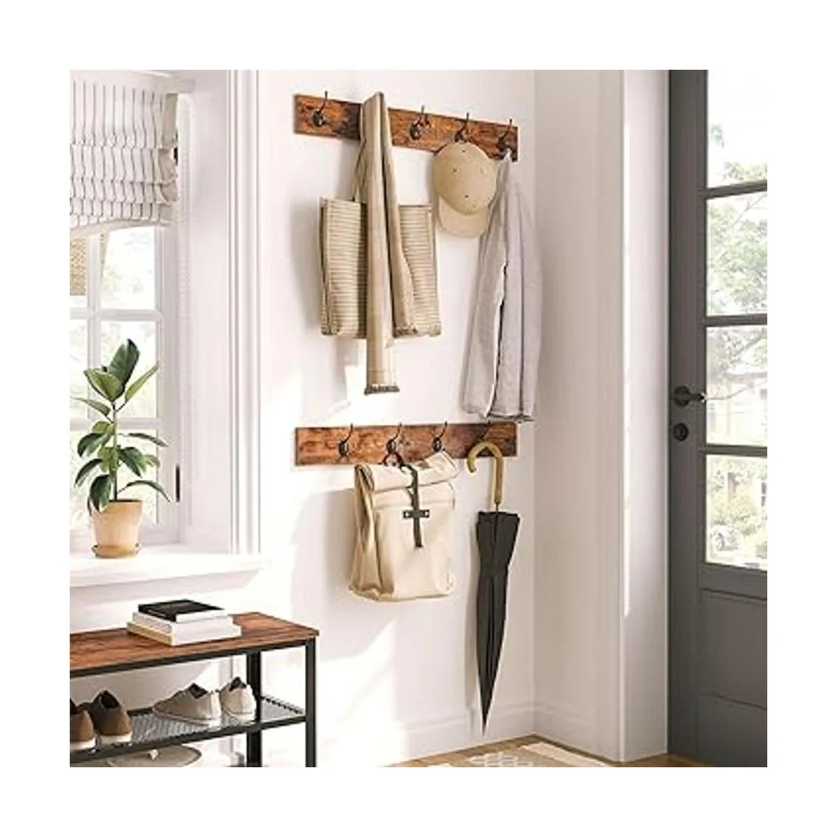Como gemelos: incluye 9 ganchos en 2 filas junto con un resistente banco de zapatos. Esta combinación de madera y metal funcionará juntos en tu entrada para conquistar el caos de una vez por todas