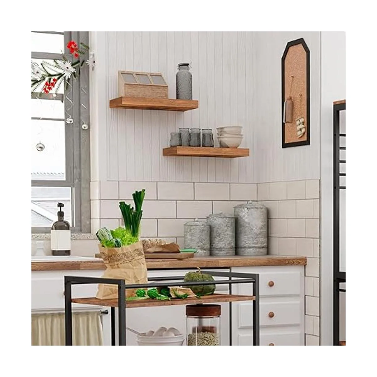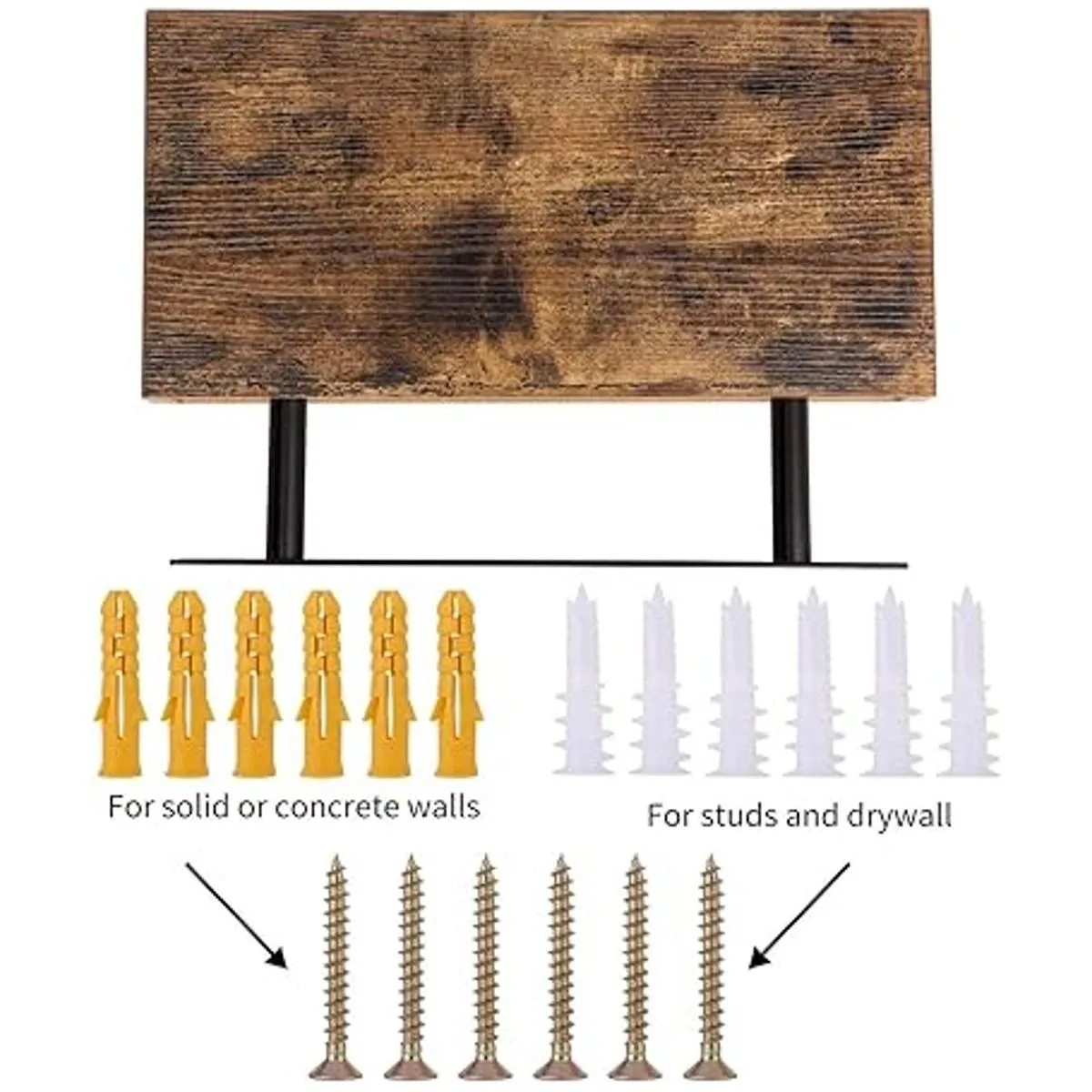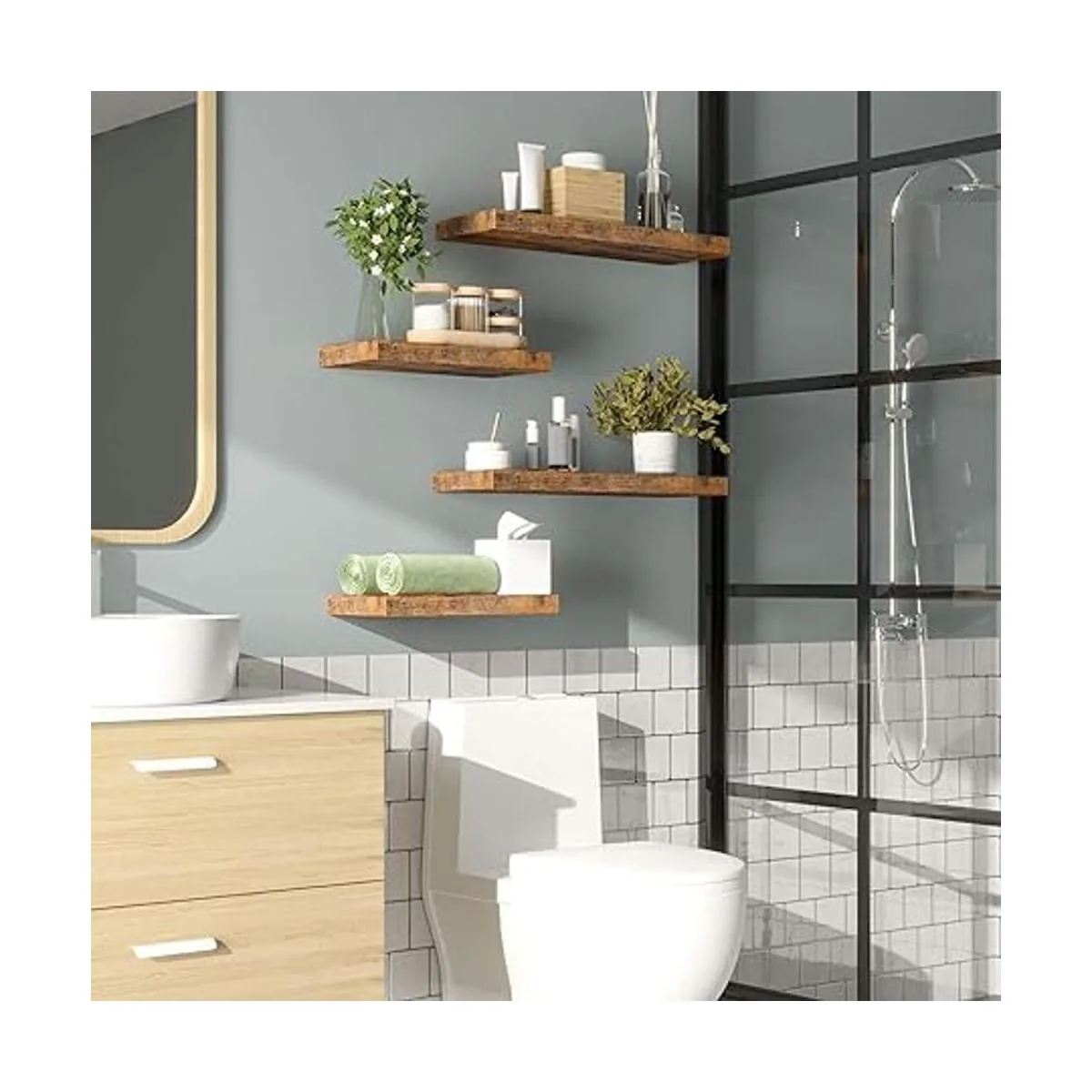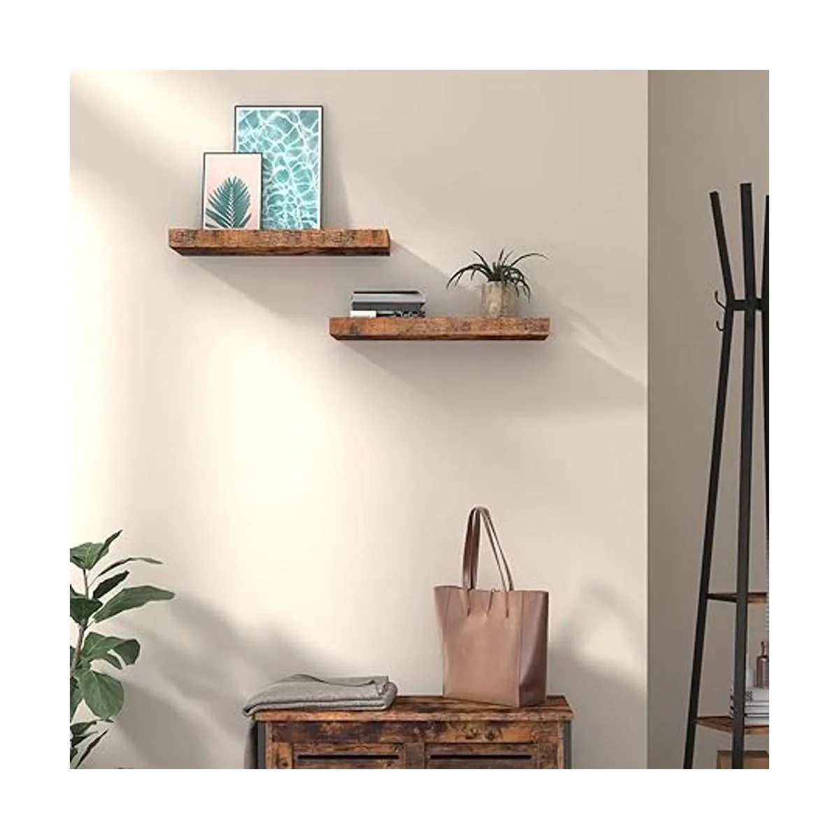 HOOBRO Estantes flotantes de madera rústica, juego de 2, estante colgante de 15.7 pulgadas con soportes invisibles, para baño, dormitorio, inodoro, cocina, oficina, decoración de sala color café rústico, BF40BJ01