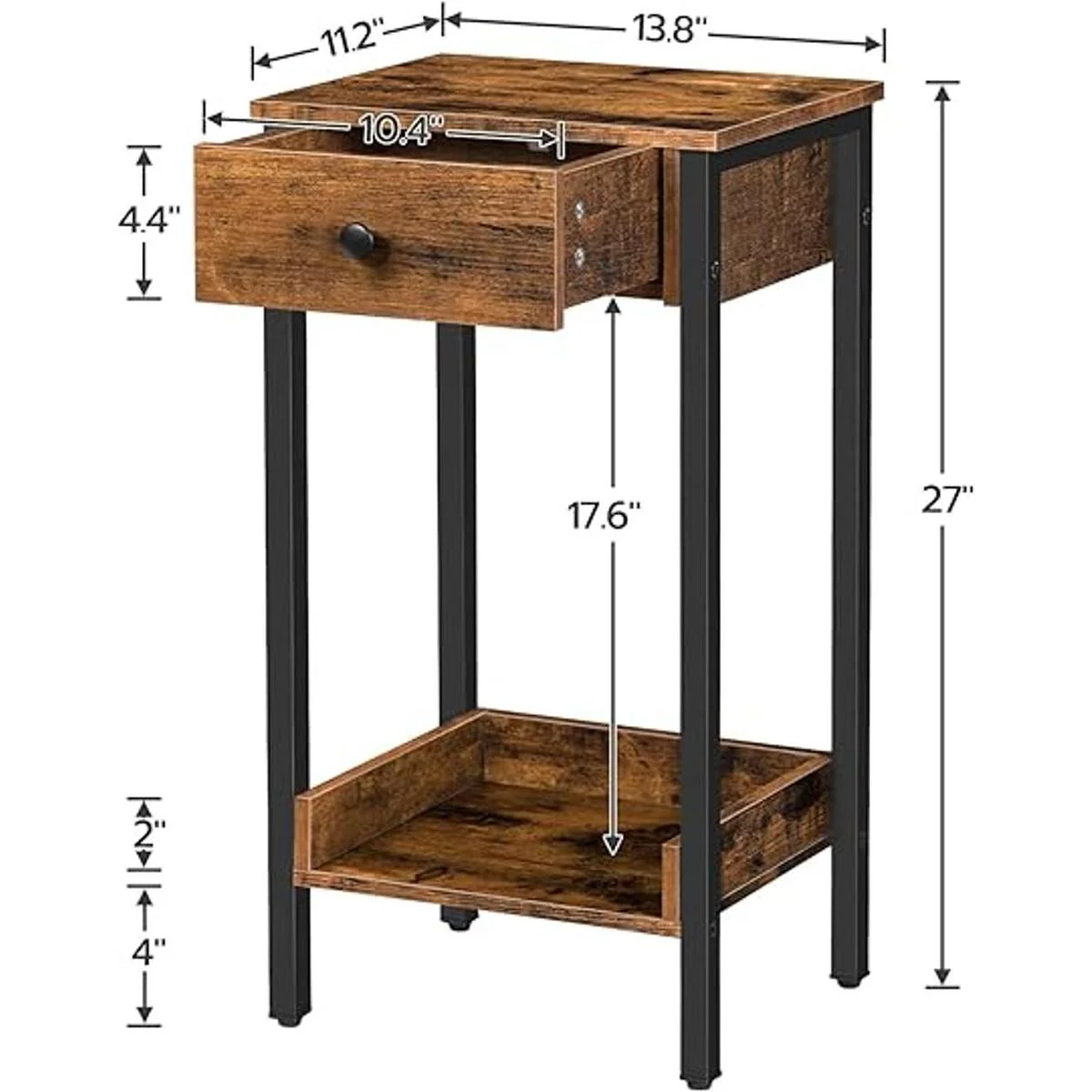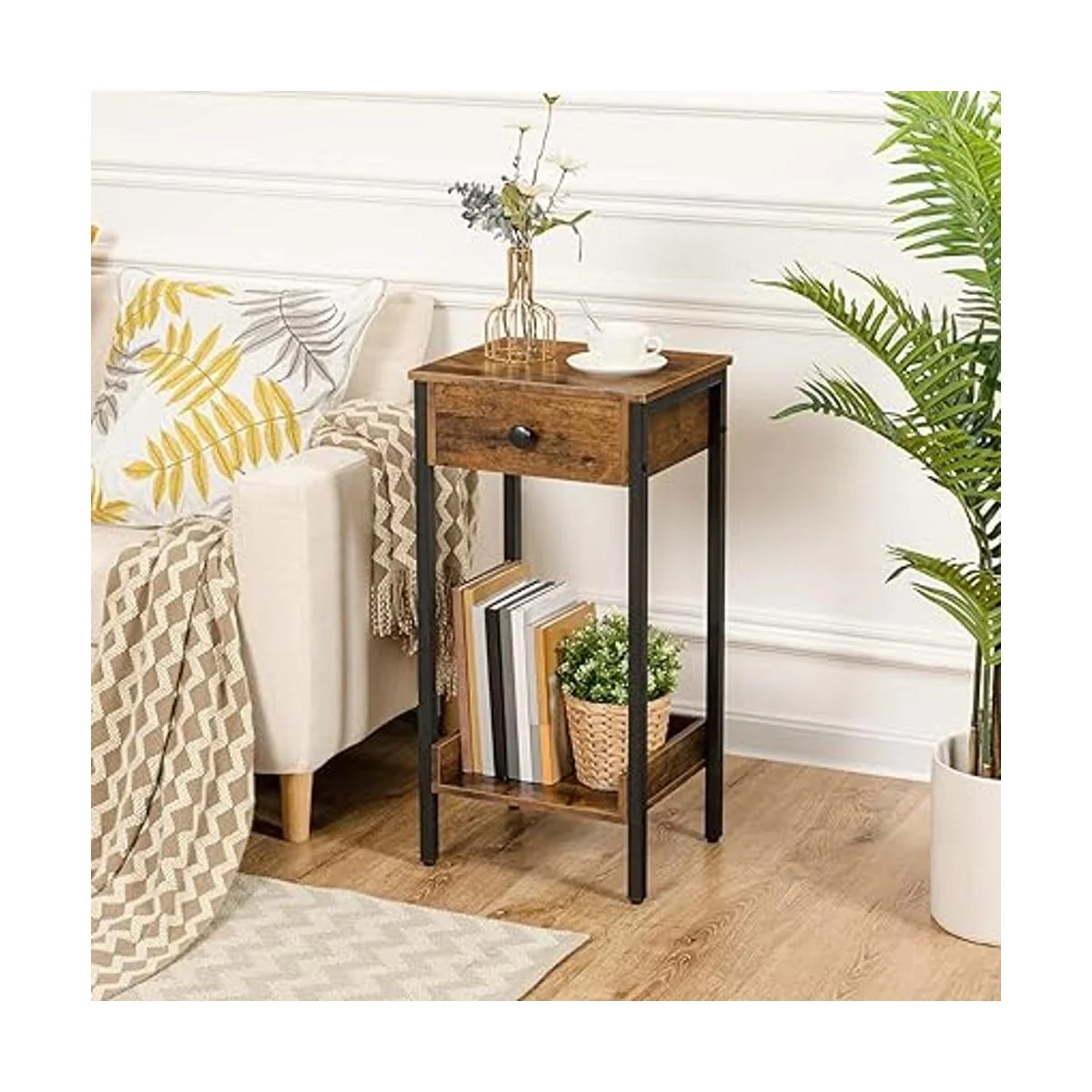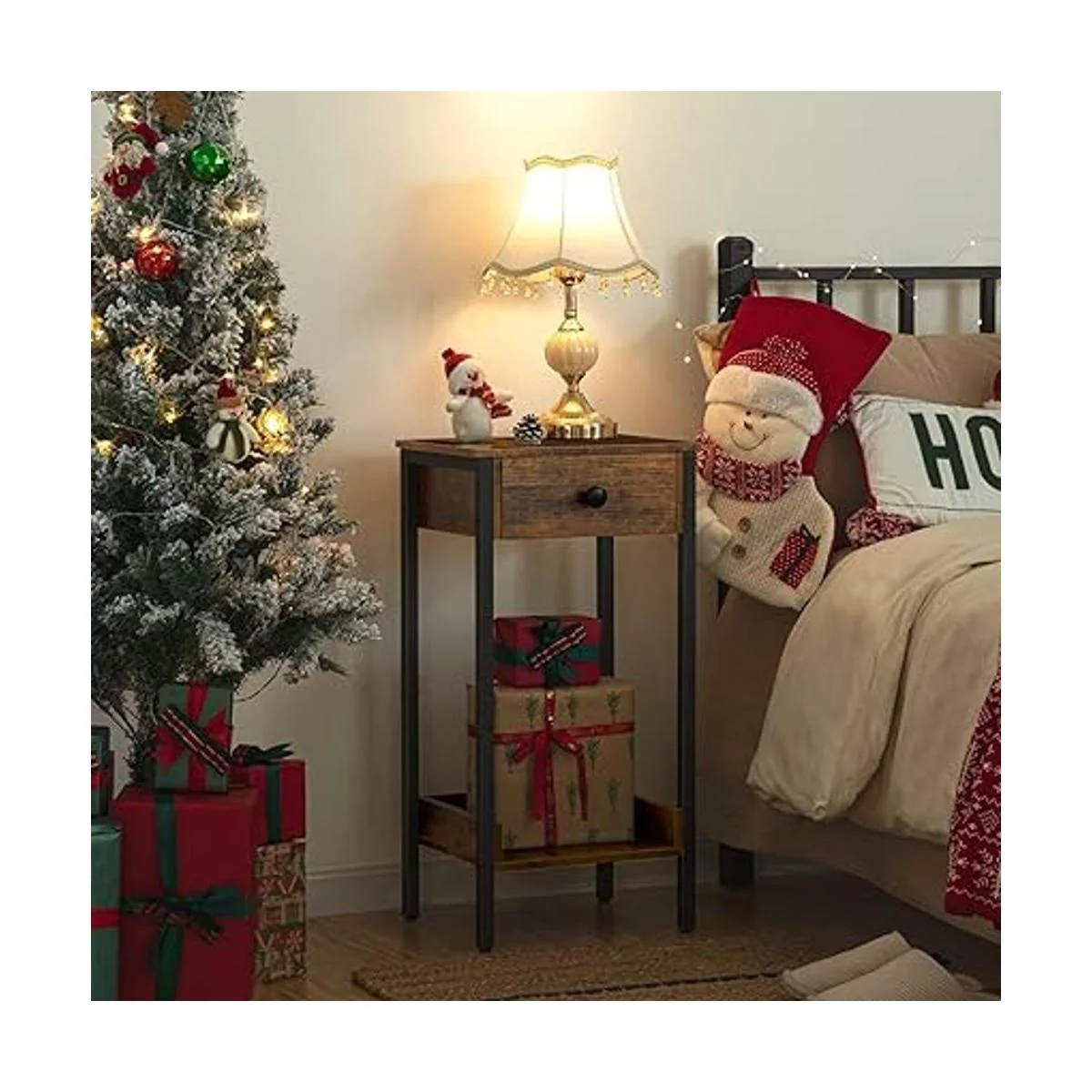 HOOBRO Mesita de noche, mesa auxiliar, mesita de noche alta con cajón y estante de almacenamiento, mesa telefónica industrial para estudio, dormitorio, ahorro de espacio, marrón rústico y negro BF71BZ01