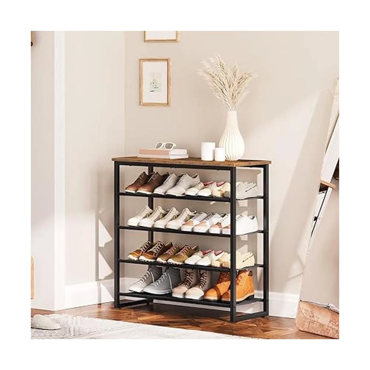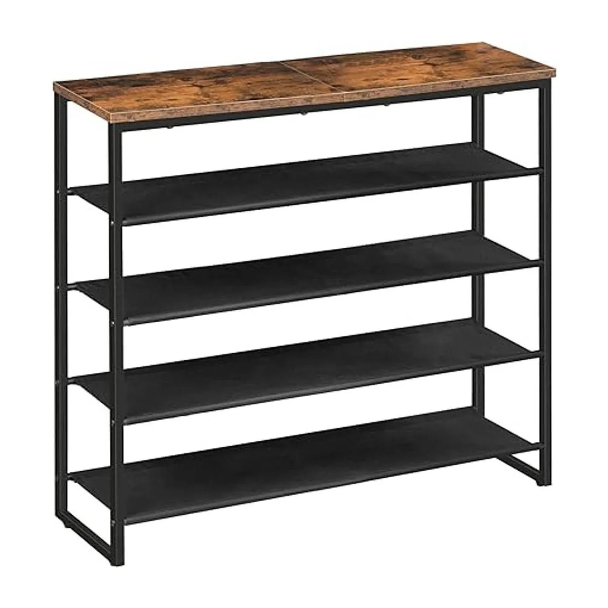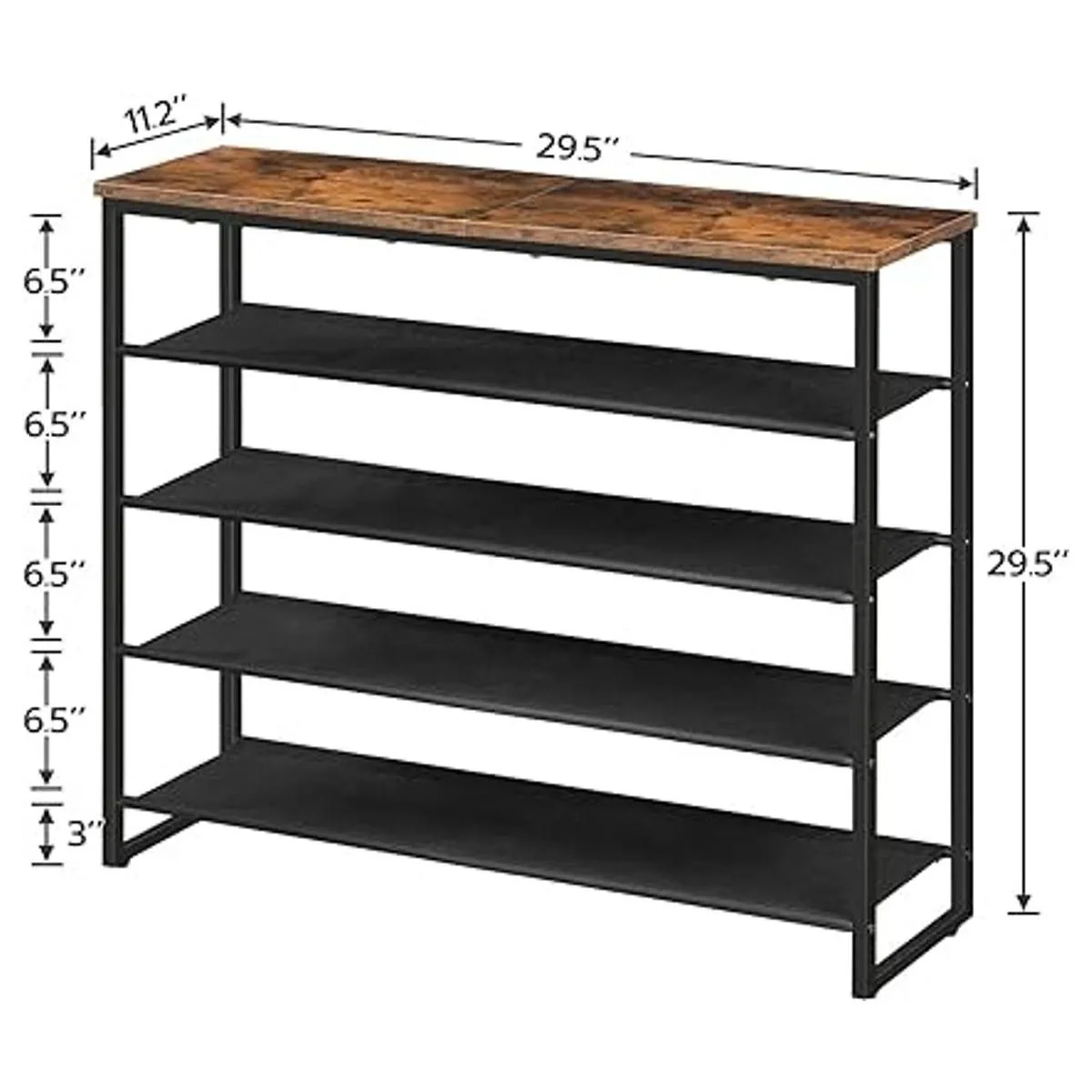 HOOBRO Zapatero, organizador de almacenamiento de zapatos de 5 niveles, estante de zapatos con 4 estantes de tela y panel superior, capacidad para 1620 pares de zapatos, para entrada, armario, marco de acero, industrial, marrón rústico BF50XJ01