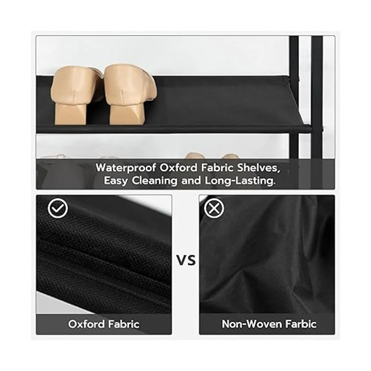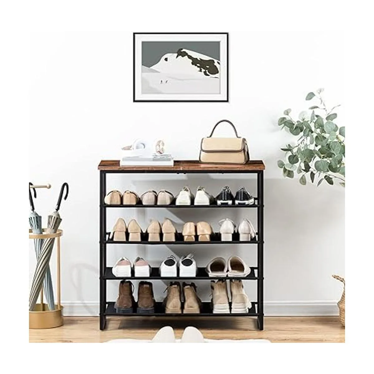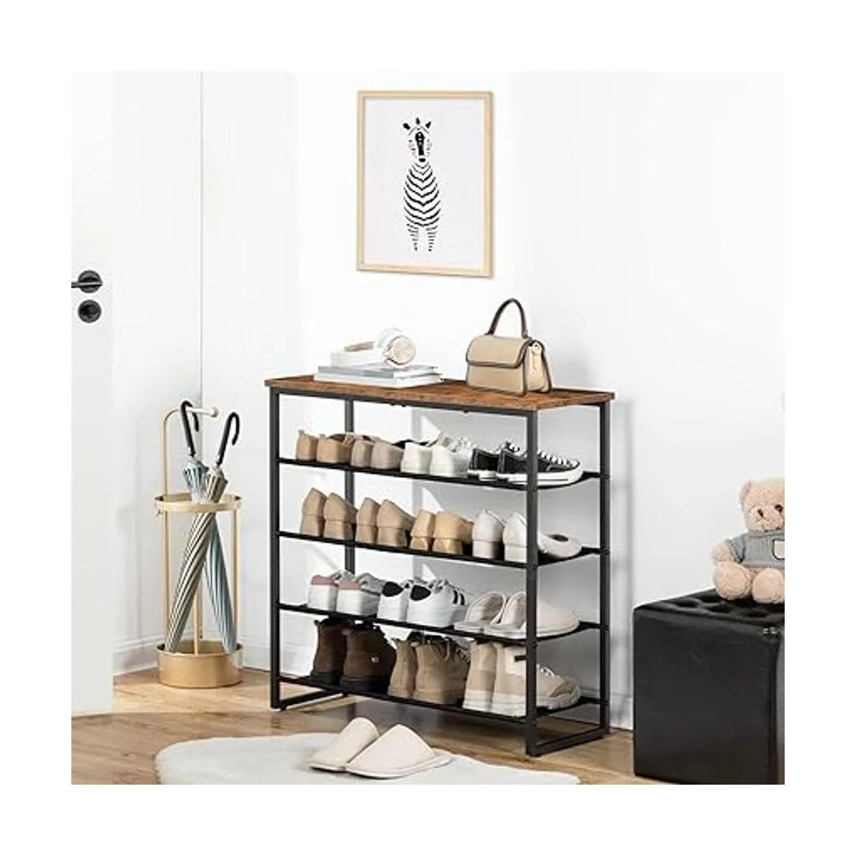 HOOBRO Zapatero, organizador de almacenamiento de zapatos de 5 niveles, estante de zapatos con 4 estantes de tela y panel superior, capacidad para 1620 pares de zapatos, para entrada, armario, marco de acero, industrial, marrón rústico BF50XJ01