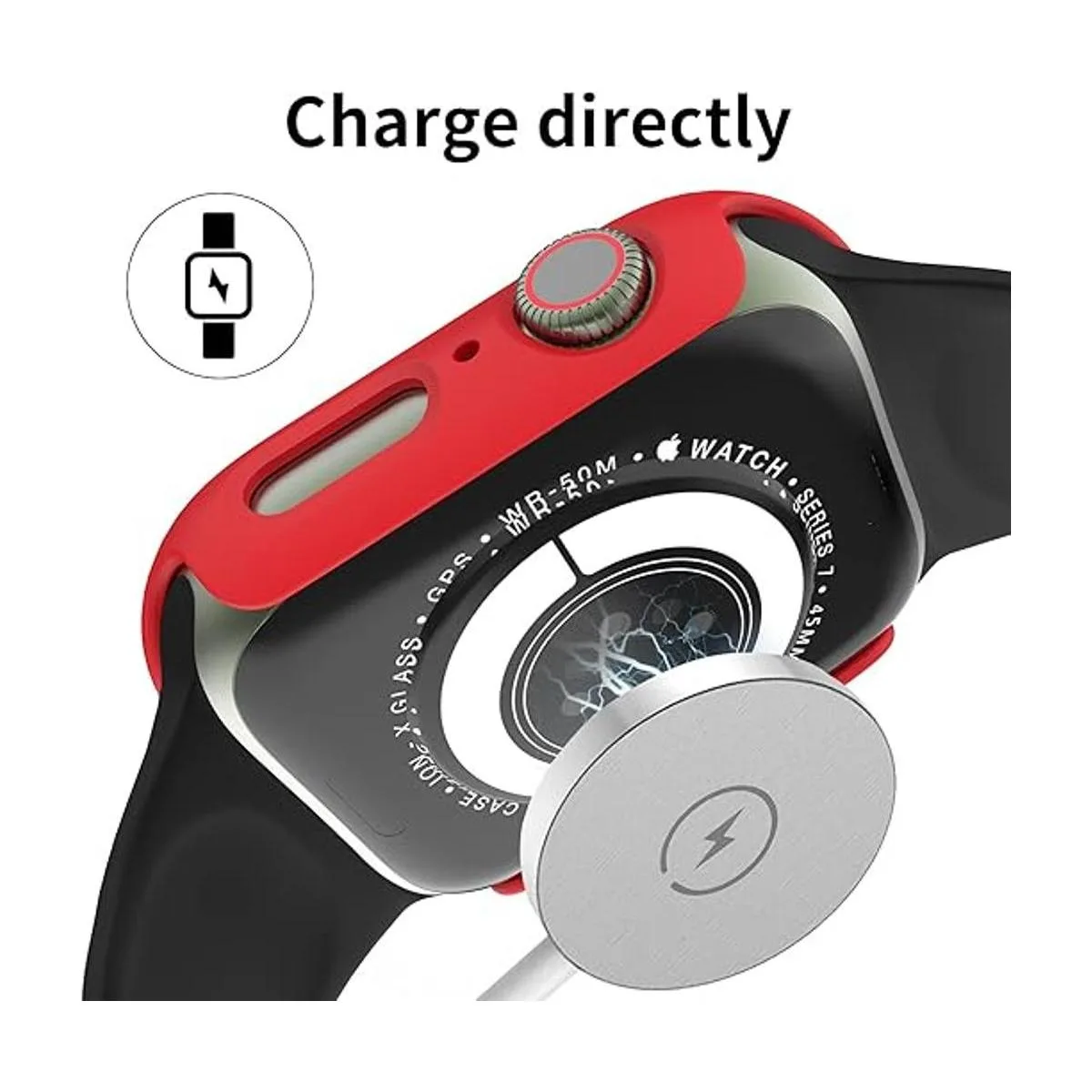Corte preciso: los recortes precisos cubren todos los botones correspondientes del Apple Watch, altavoz, micrófono y sensores, fácil acceso a todos los controles y sensores, firme y no se cae fácilmente. El hueco trasero preciso del parachoques protector se puede cargar directamente, no es necesario quitar la caja del reloj o la correa