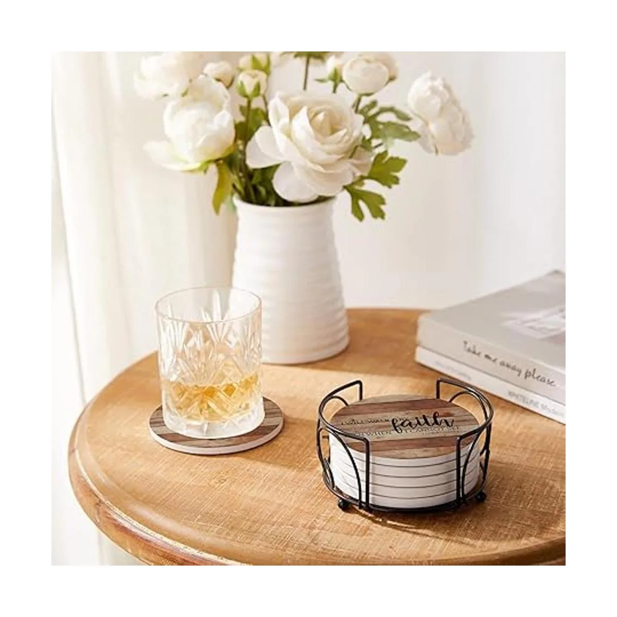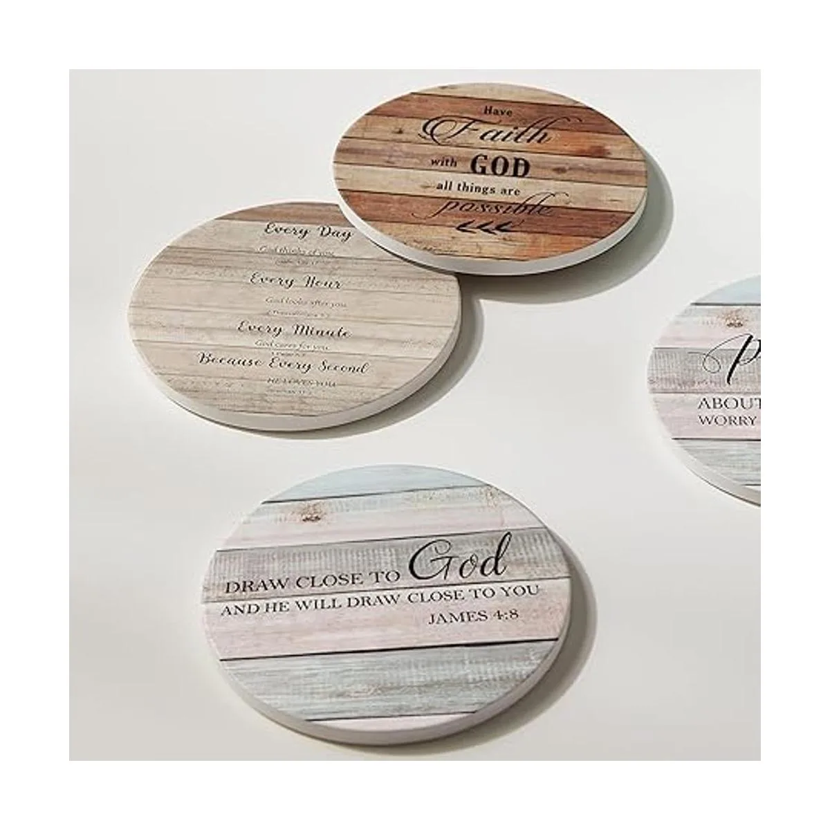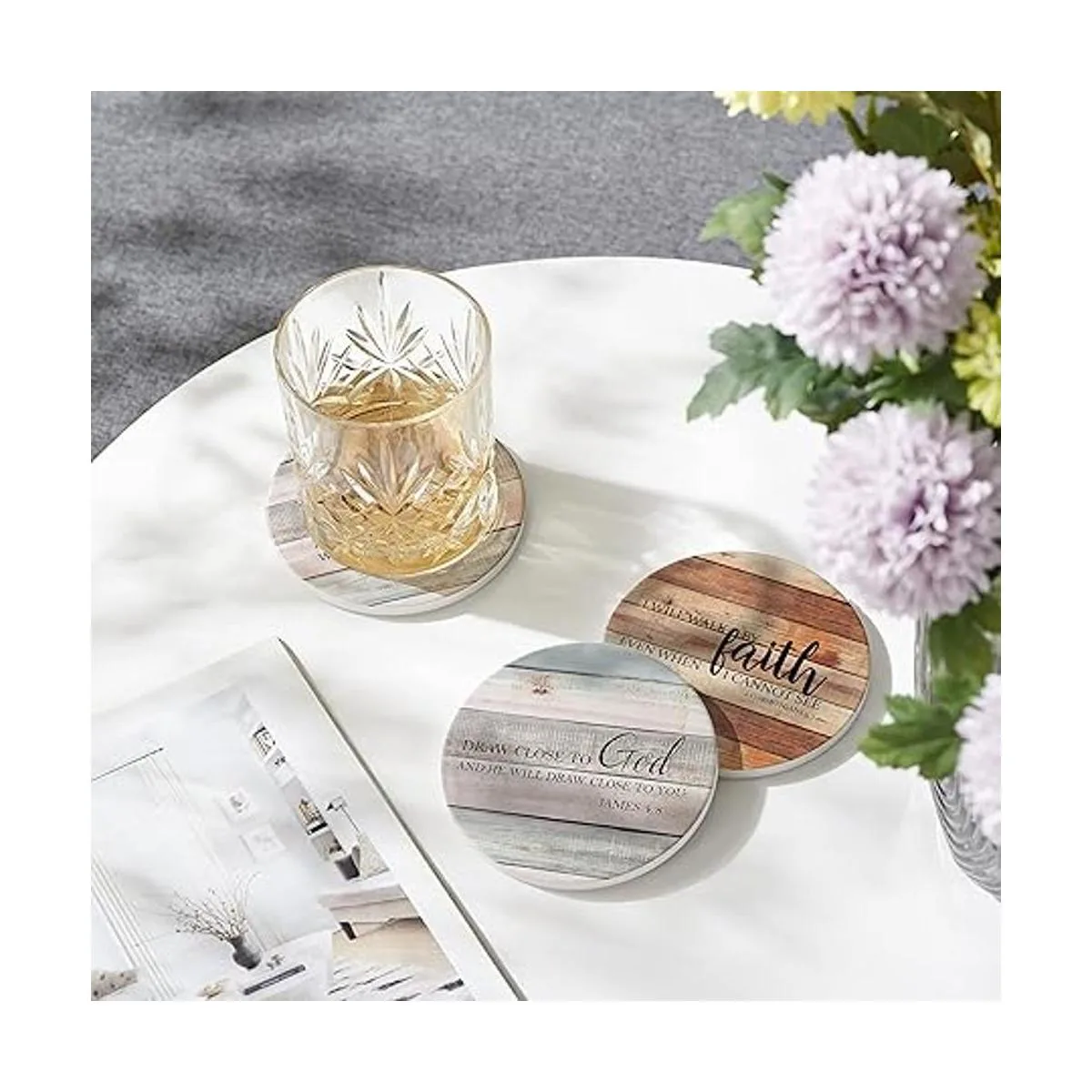 Hoomey Posavasos para bebidas con versículos de la Biblia, juego de 6 posavasos de bebidas absorbentes con soporte, posavasos de cerámica con respaldo de corcho para protección de mesa, posavasos cristianos, regalos cristianos