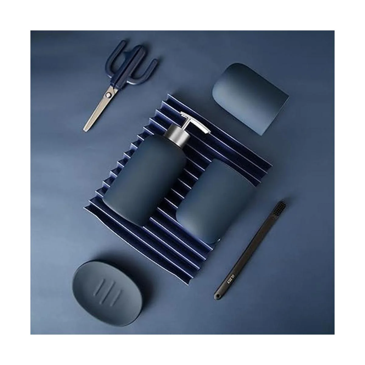 Hoomtaook Juego de accesorios de baño de 4 piezas, juego de accesorios de cerámica para encimera de tocador para decoración de baño con bomba de jabón dispensadora de loción, 2 vasos y jabonera azul