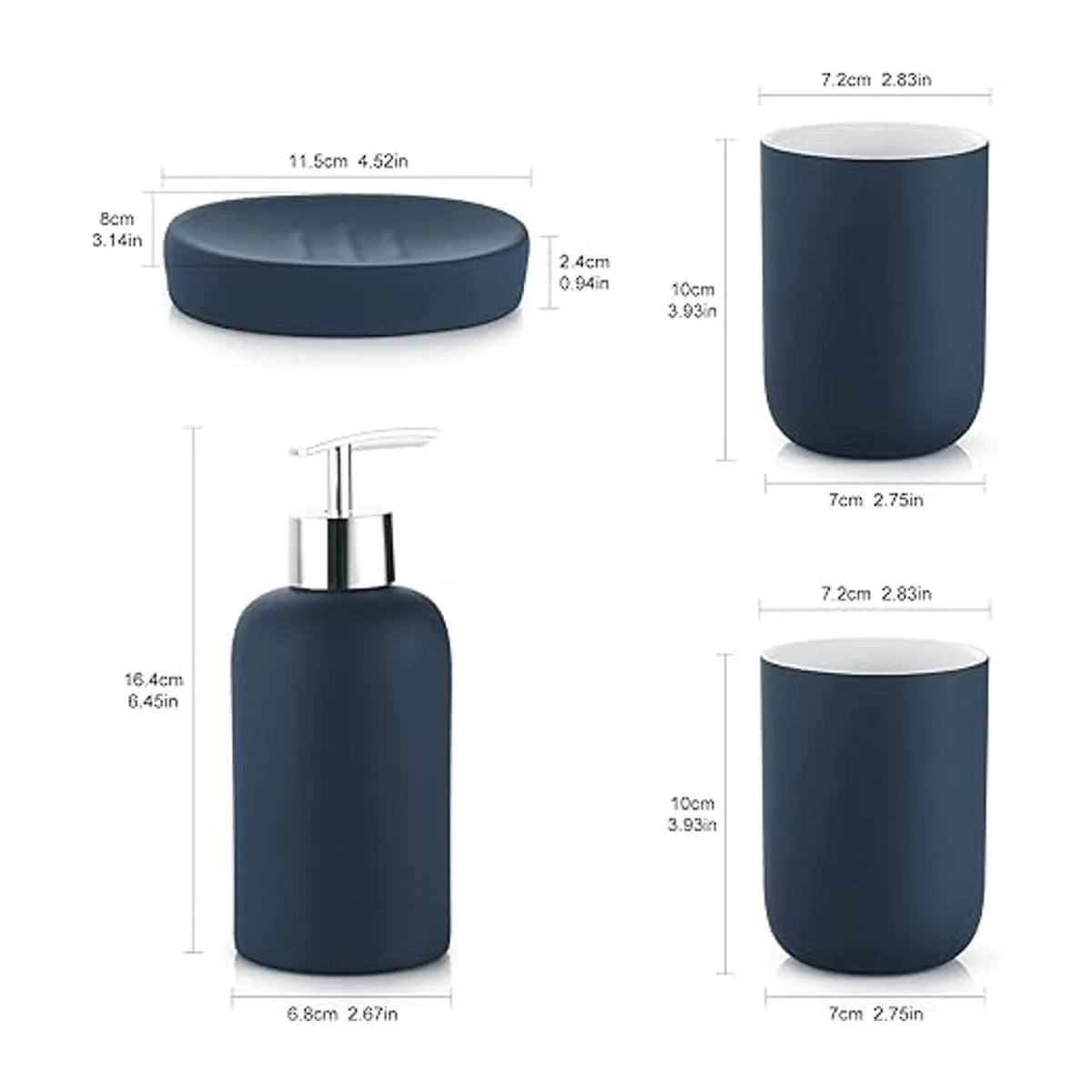 Juego completo de 4 piezas: el juego de baño incluye 1 dispensador de jabón, 2 vasos, 1 jabonera.