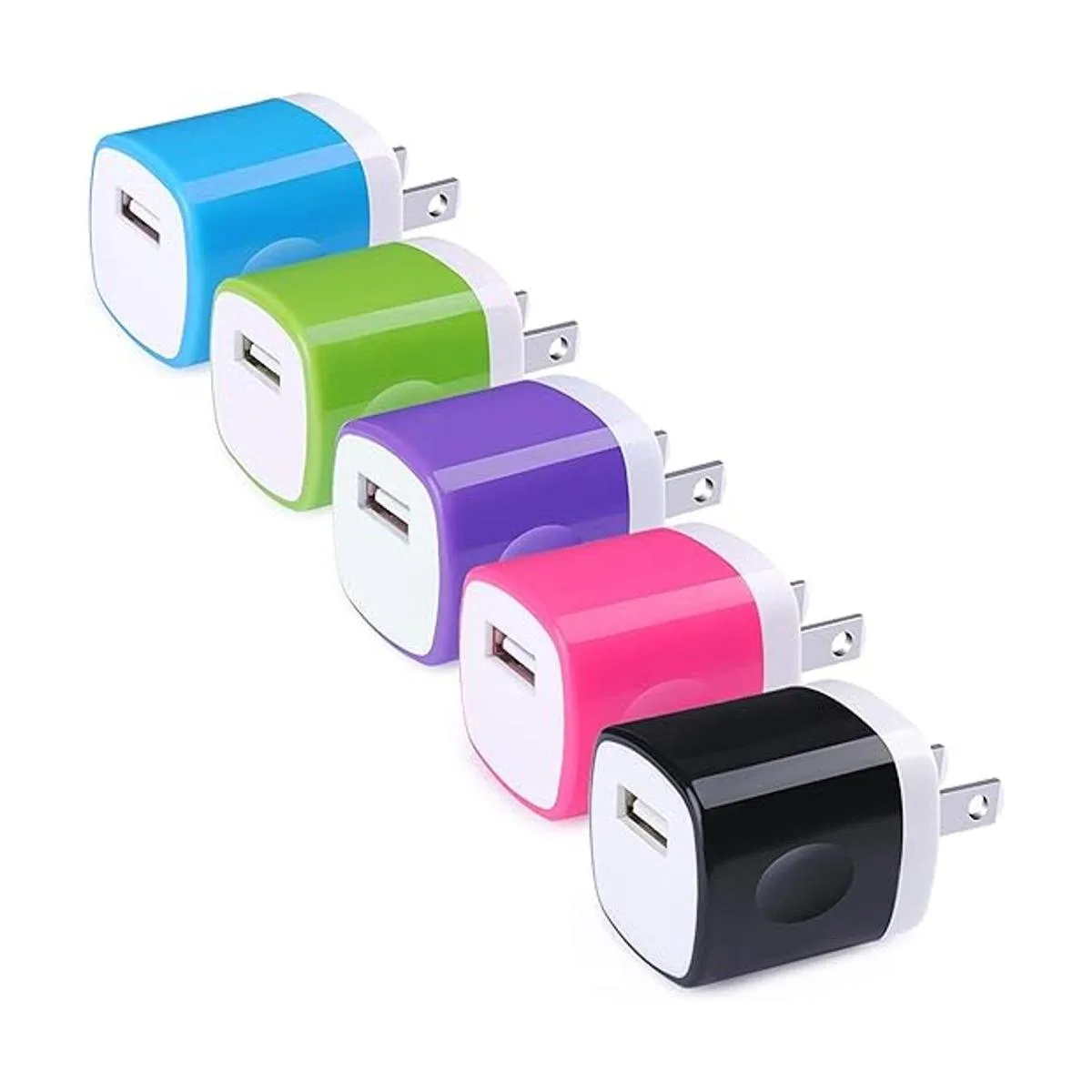 Hootek Bloque de cargador de pared, enchufe USB, paquete de 5 unidades de 1A5 V, caja de carga de pared de un solo puerto de 1A5 V, cubo de carga compatible con iPhone 14 13 Pro 12 11 XS Max X 8 Plus, iPad, Samsung Galaxy, LG, HTC, Moto, cargador de teléfono Android