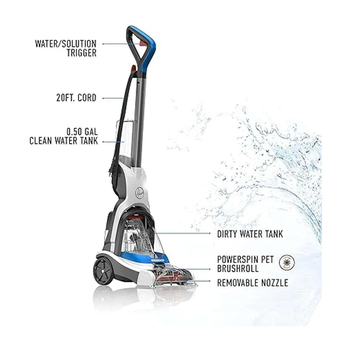 Hoover PowerDash: Limpiador de alfombras para mascotas Compacto ligero, FH50700, Color Azul