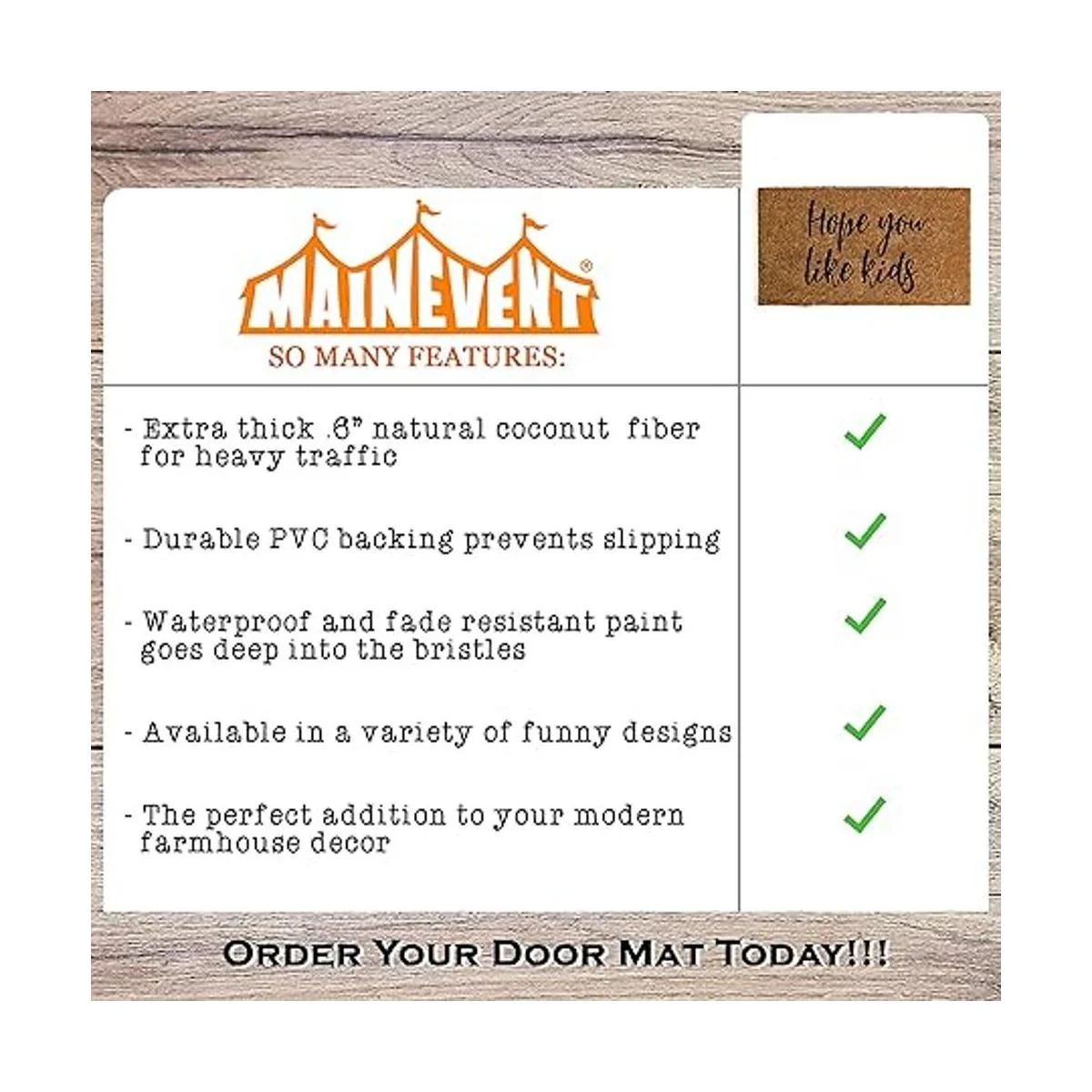 Felpudos para entrada exterior diseñados en los Estados Unidos. Felpudo de bienvenida Hope You Like Kids para puerta delantera fabricado con materiales de la más alta calidad y más seguros