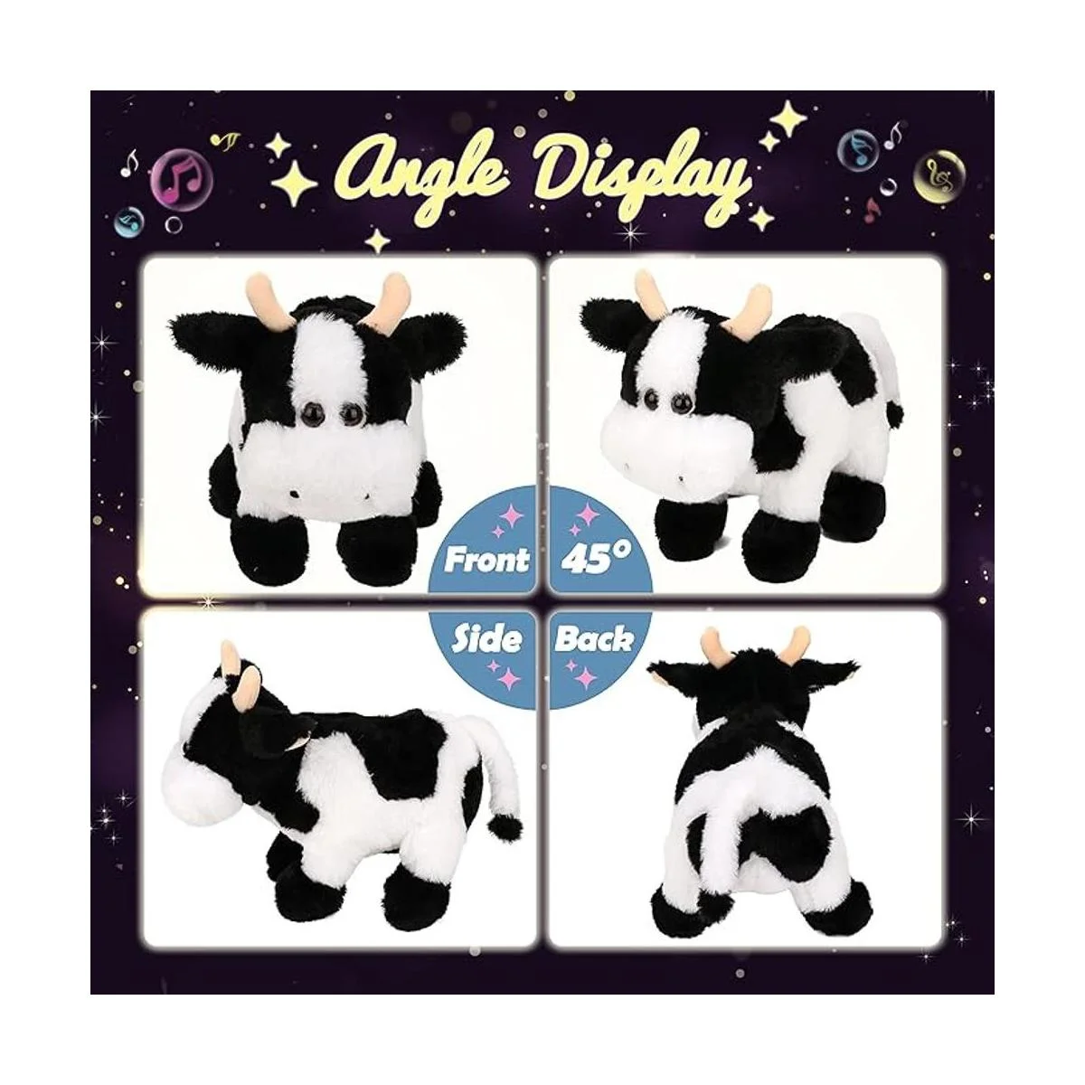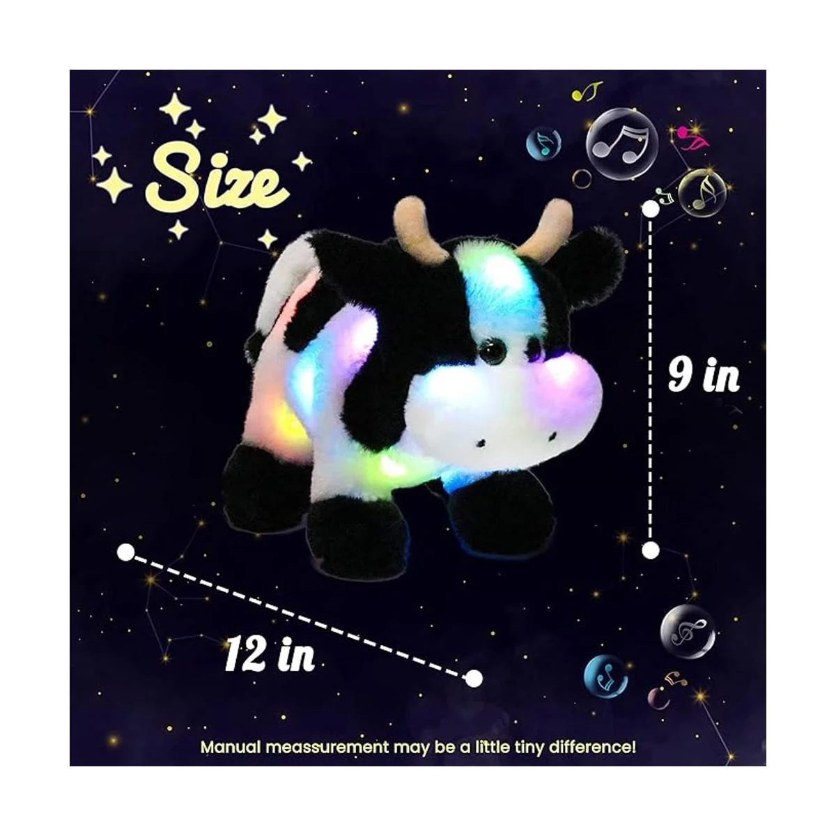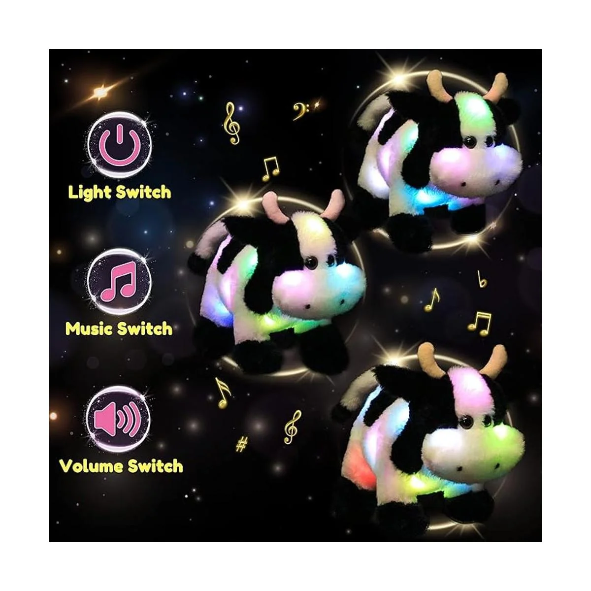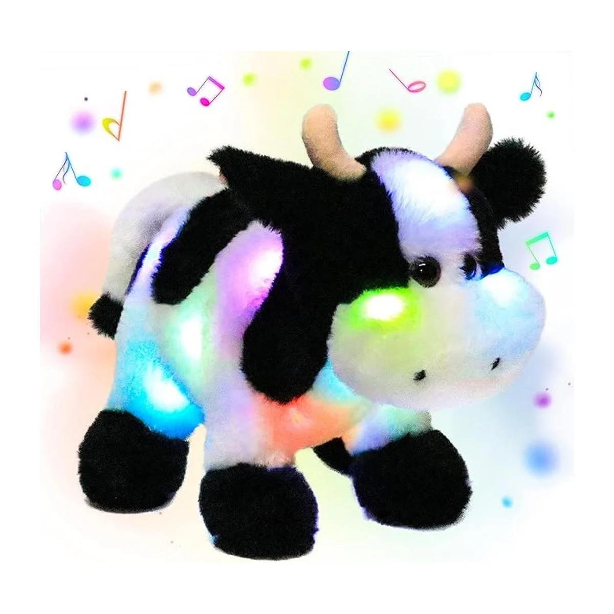 Hopearl Vaca de peluche con luces LED y música, con volumen ajustable, canciones de cuna, animado, da calma, para festival, cumpleaños, niños pequeños, 12 pulgadas