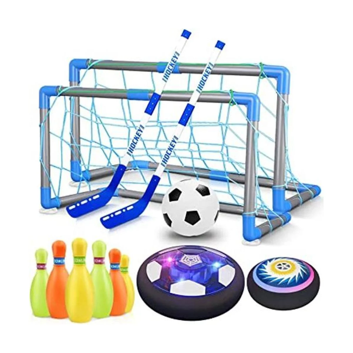 HopeRock Juego de bolos de hockey de fútbol 3 en 1, juguetes para interiores y exteriores para niños de 3 a 12 años, juguetes exteriores con luces LED, regalos de cumpleaños de Navidad para niños y niñas de 3, 4, 5, 6, 7, 8, 9 años