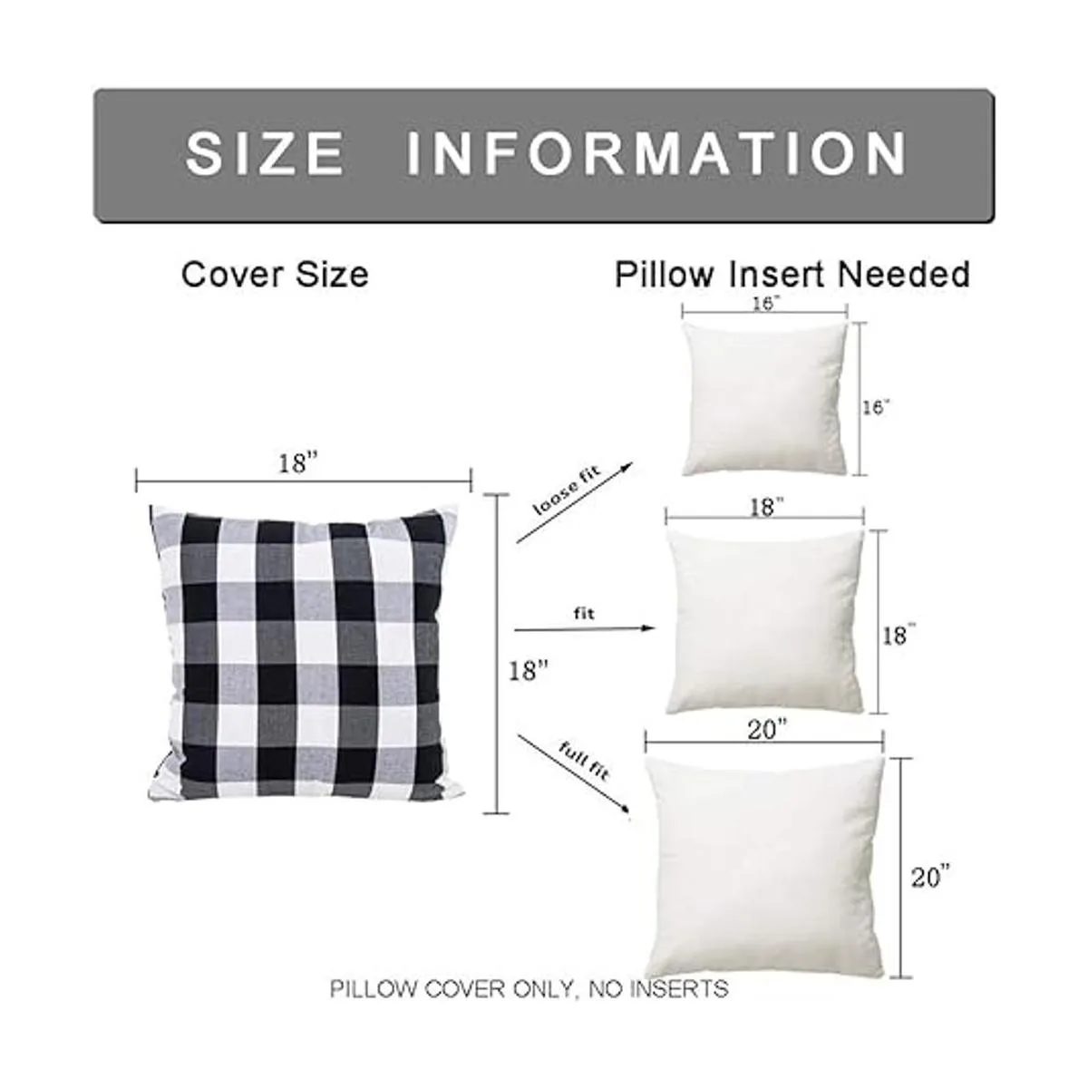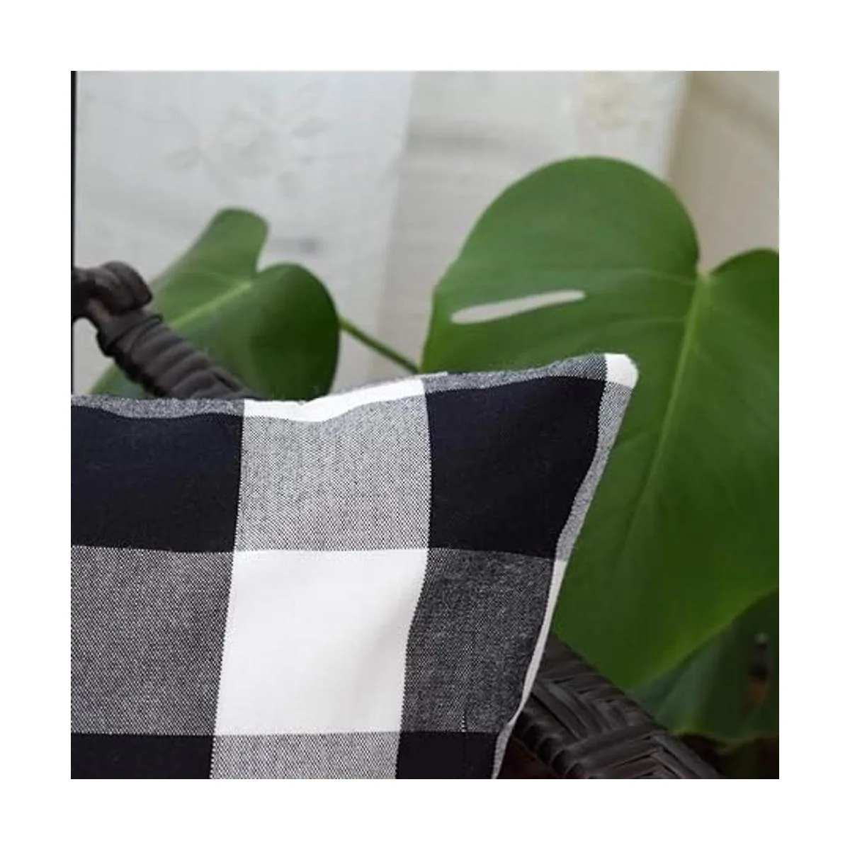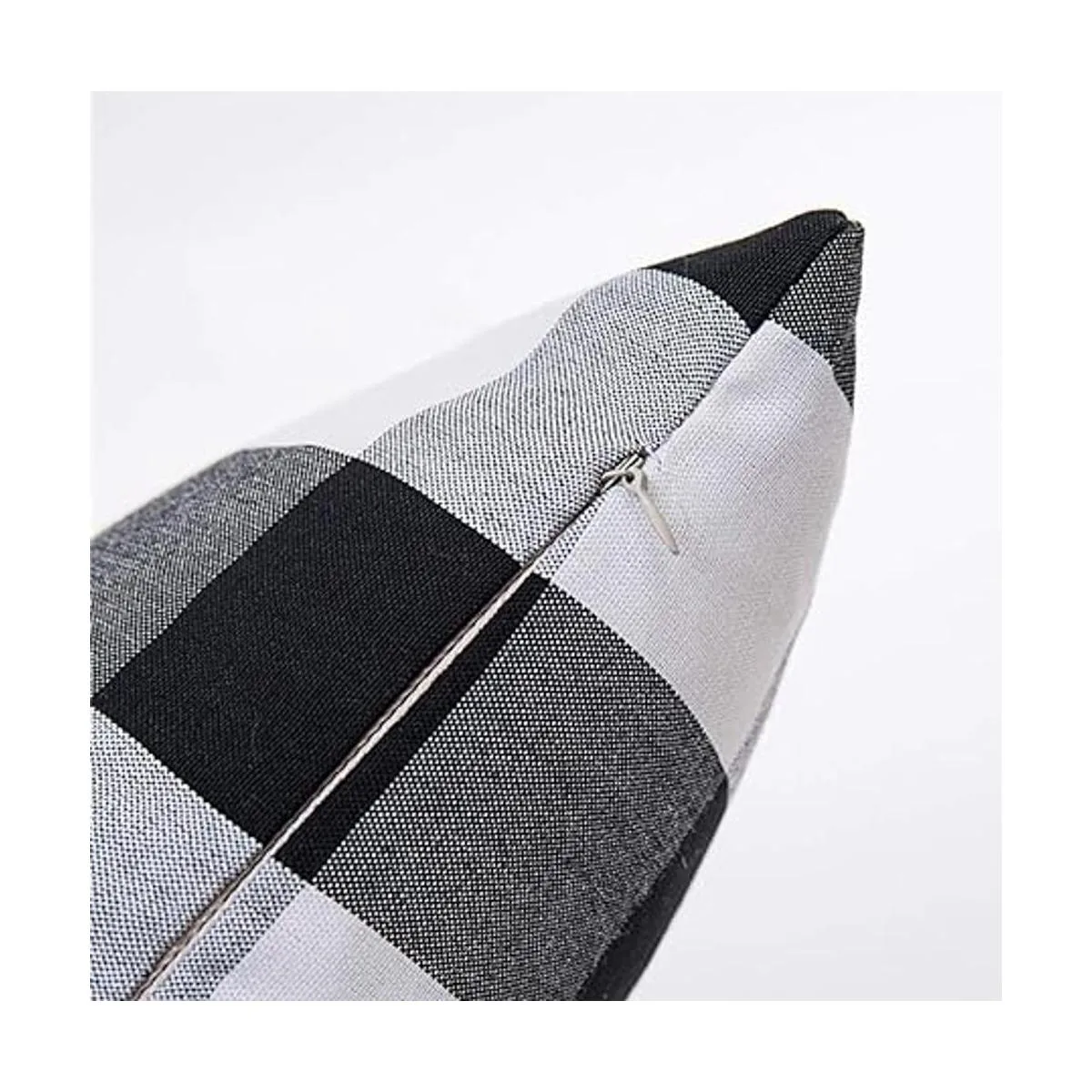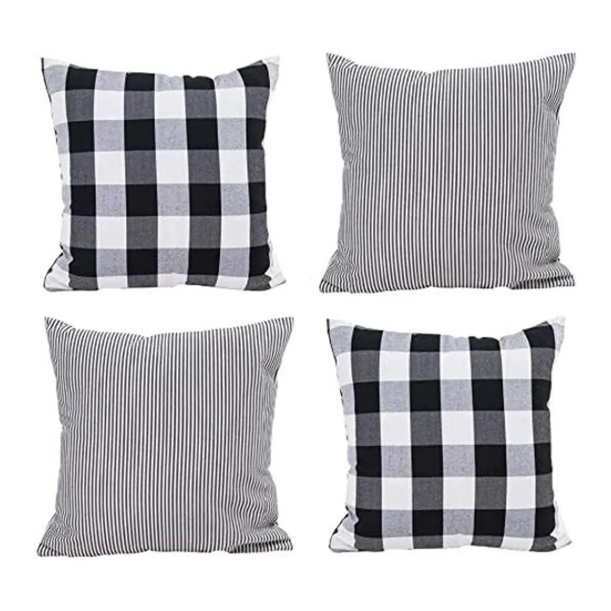HOPLEE Juego de 4 fundas de almohada de verano de 18 x 18 pulgadas, fundas de almohada de 18 x 18 pulgadas, color blanco y negro con diseño de cuadros de búfalo y rayas