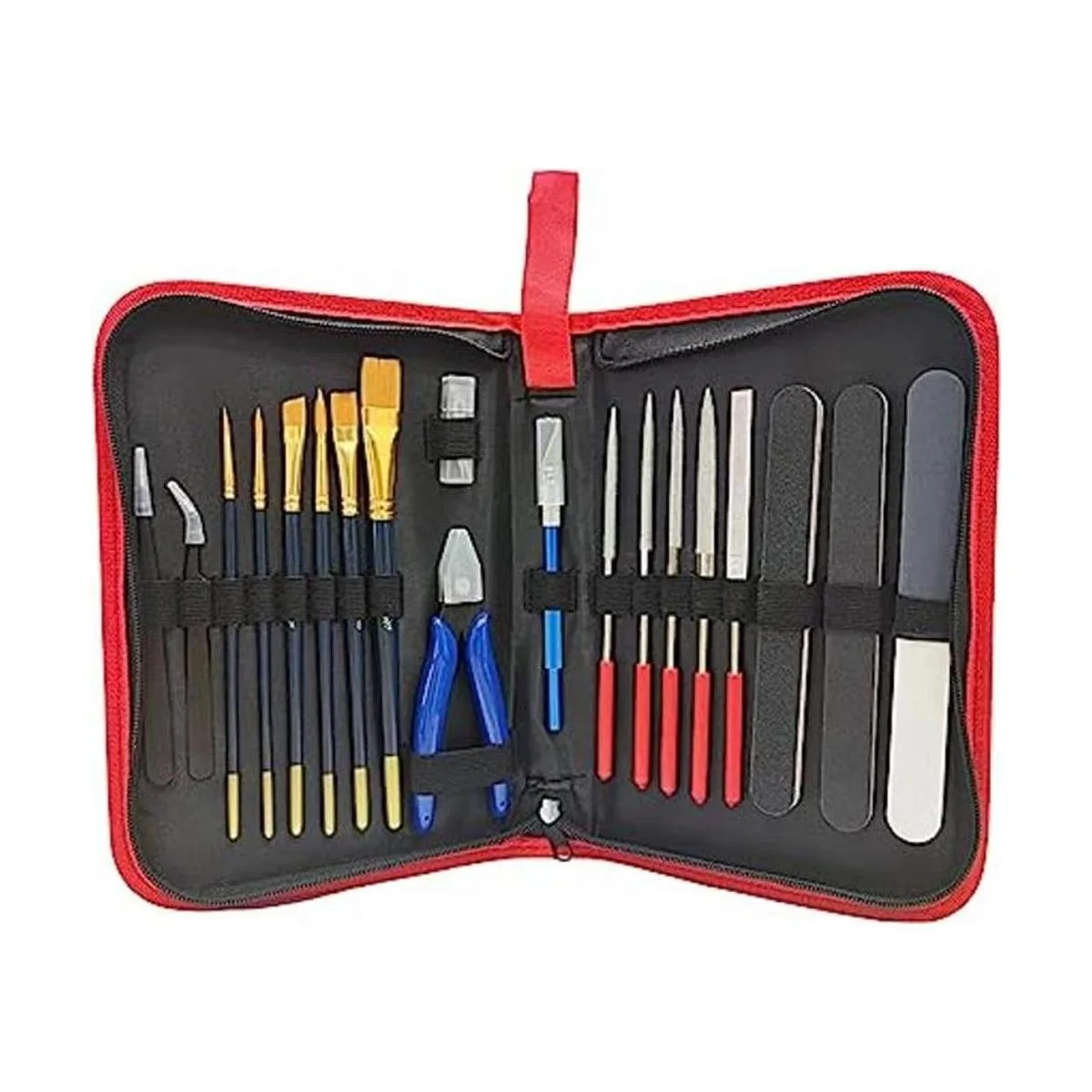 HOPLEX Kit de herramientas modelo 20 en 1 para adultos, juego de herramientas básicas con pinza, pinzas, limas de aguja, barras de pulido para automóvil, avión, modelo, construcción, reparación y fijación