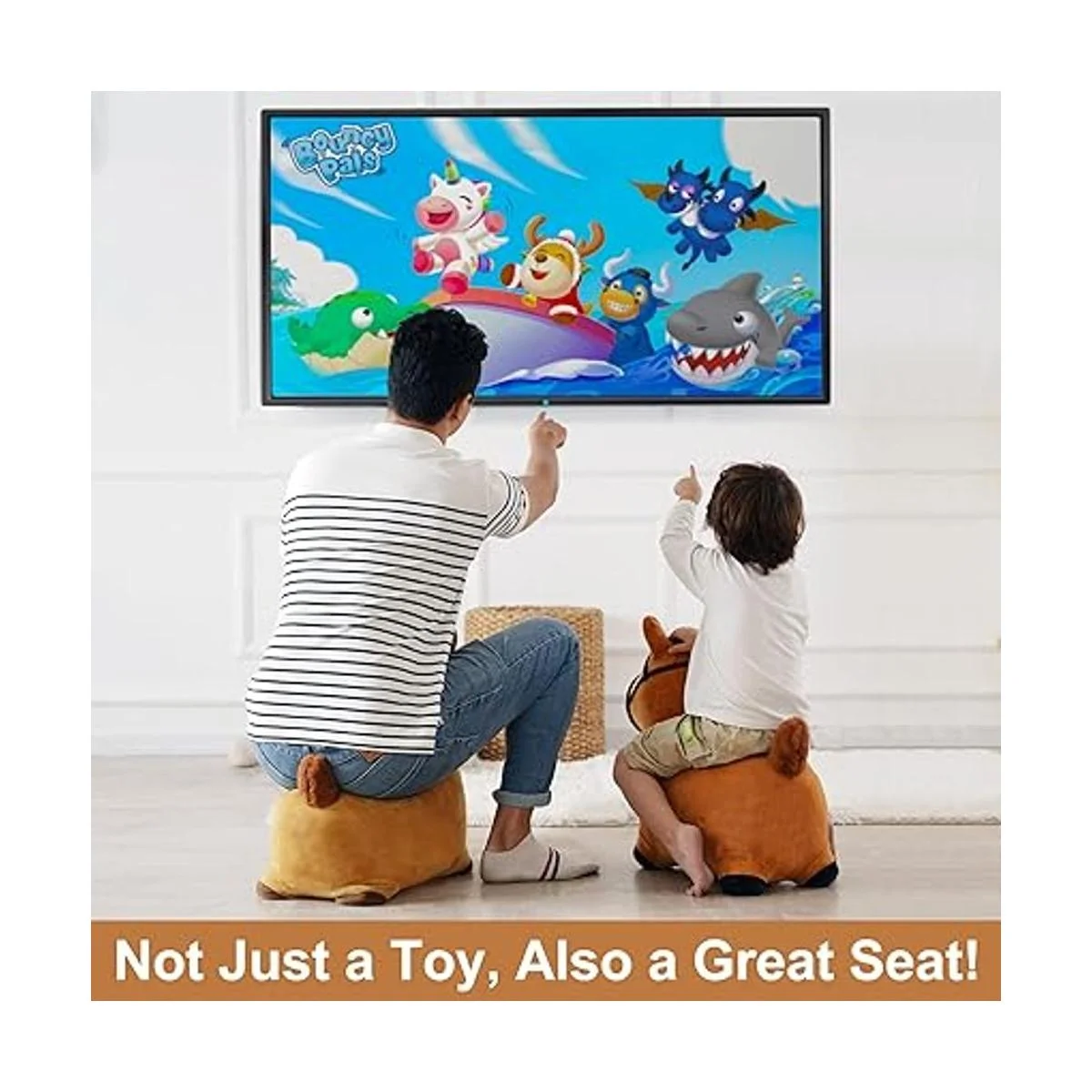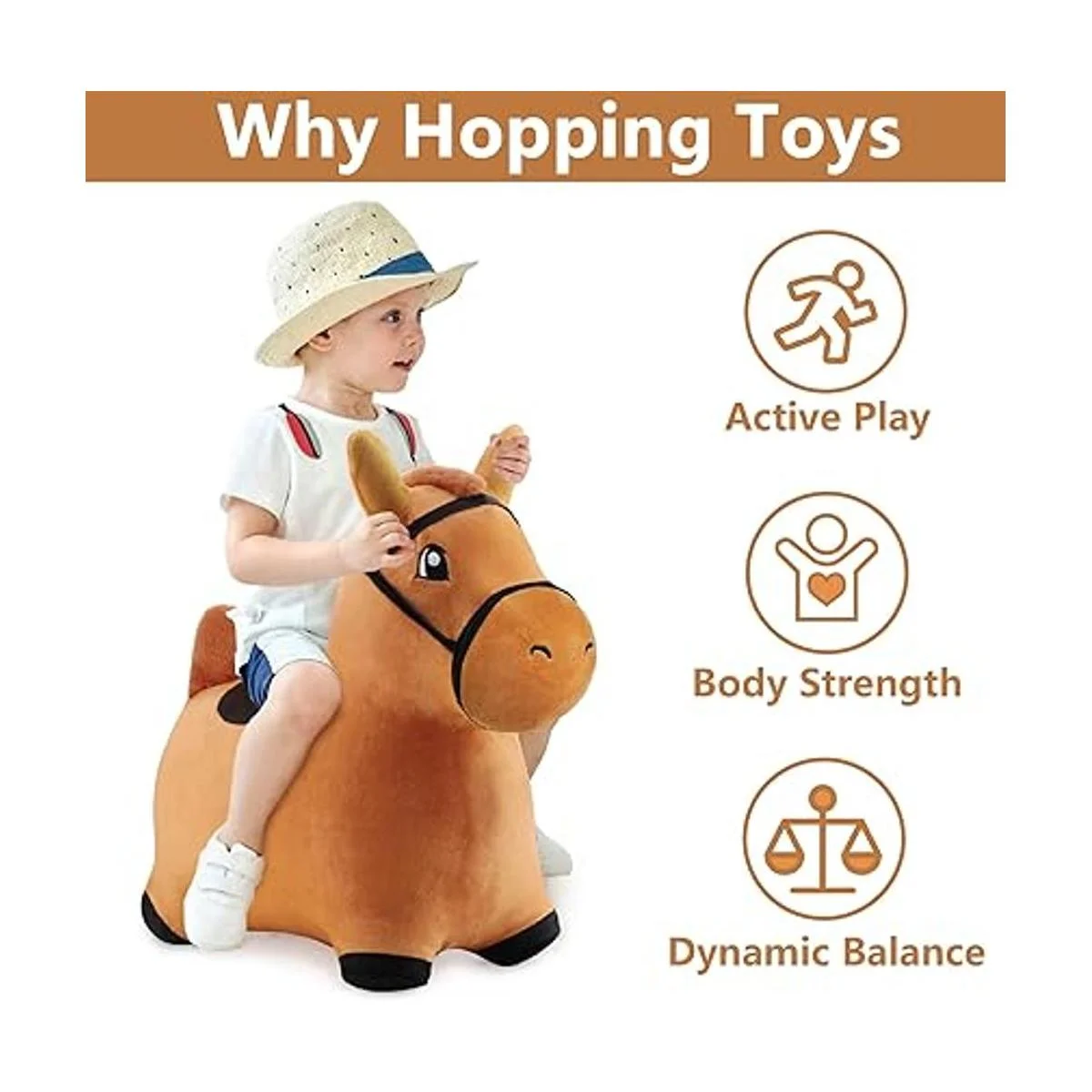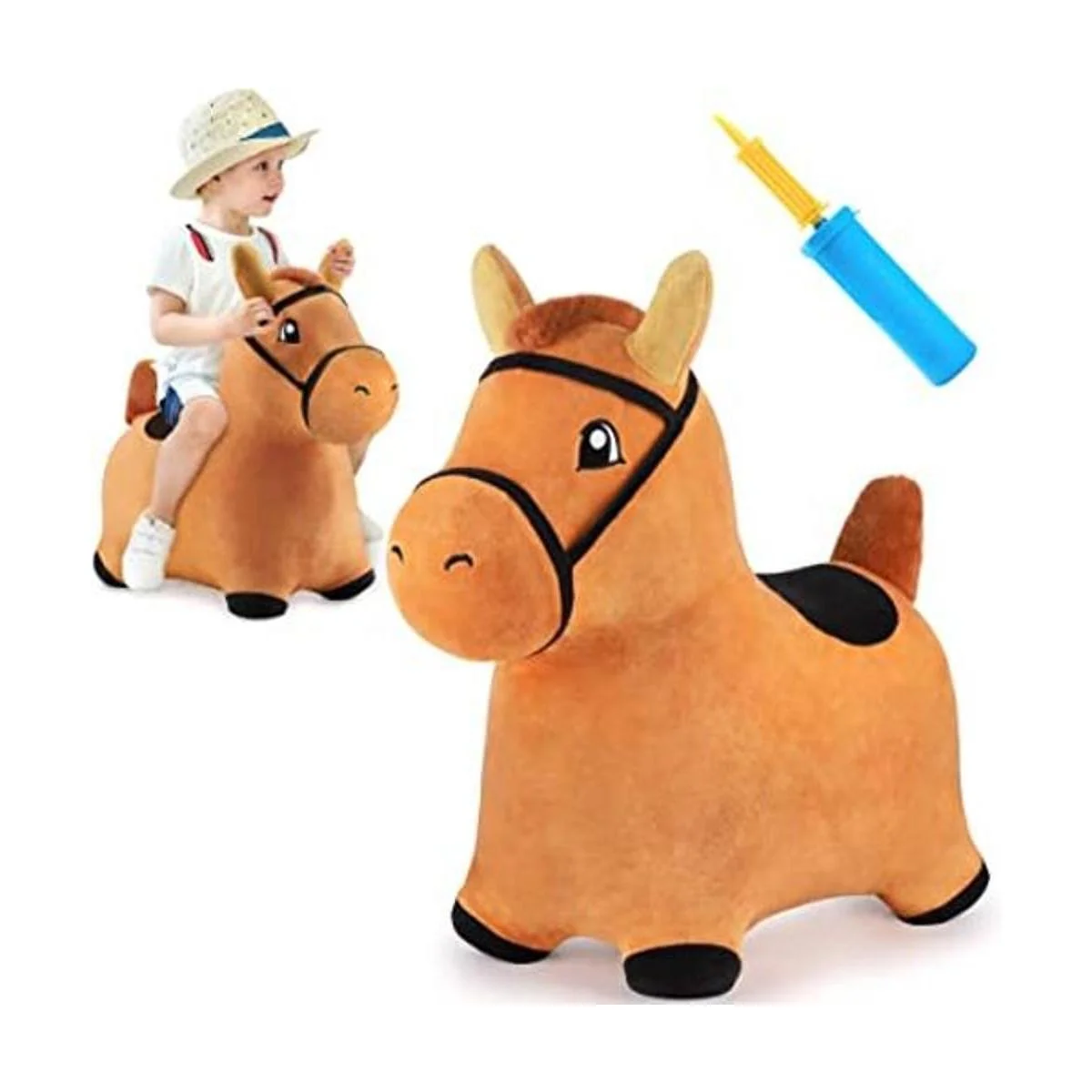 Hopping Horse, iPlay, iLearn caballo saltarín, inflable, juguetes de felpa de caballo para cabalgar, con bomba marrón