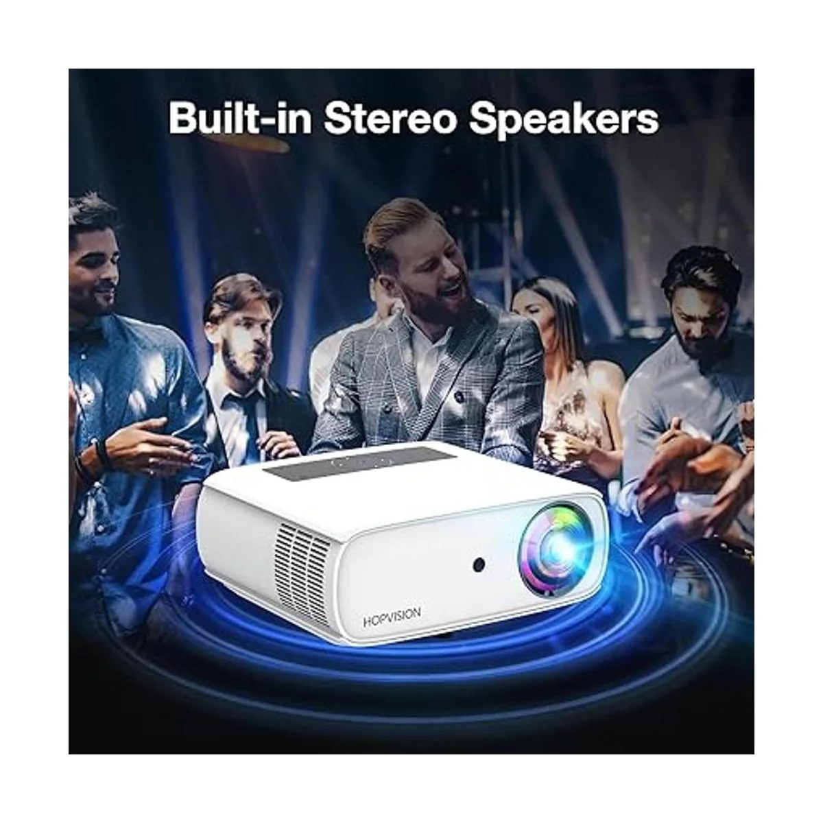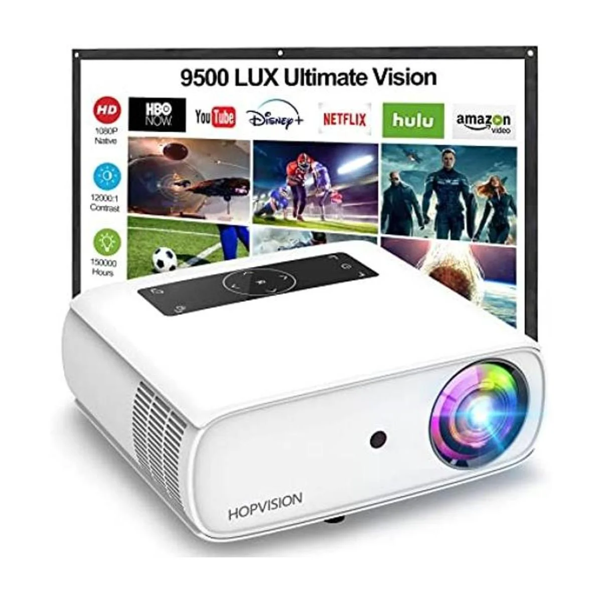 HOPVISION Proyector nativo de 1080 píxeles y Full HD, proyector de películas de 9000 Lux con 150 000 horas de vida útil de la lámpara LED, compatible con 4K, proyector de 350 pulgadas de exterior para celular, computadora, laptop, PS4, dispositivo USB para TV, excel, powerpoint