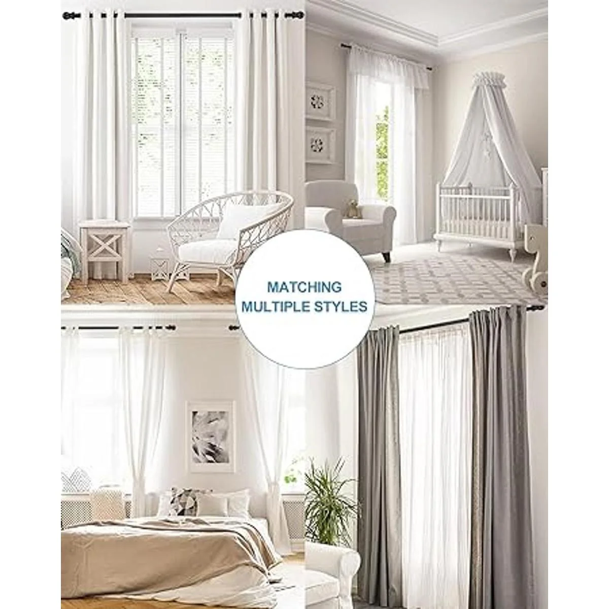 Barras de cortina ajustables: la barra de cortina negra HOSKO viene en diferentes piezas, las barras extensibles te permiten obtener una longitud de ajuste personalizado.