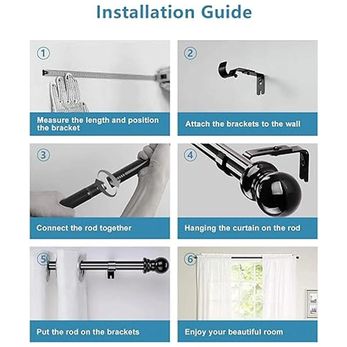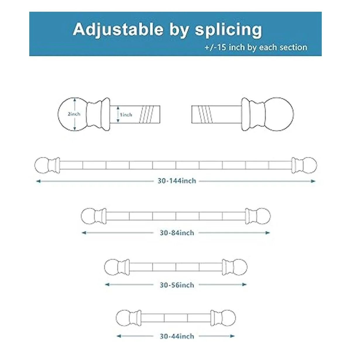 El paquete incluye: el kit de barras de cortina de 1 pulgada contiene todo lo que necesitas al instalar barras de cortina de ventana: 2 barras con remates, 4 barras centrales, 3 soportes, 6 tornillos, 6 anclajes