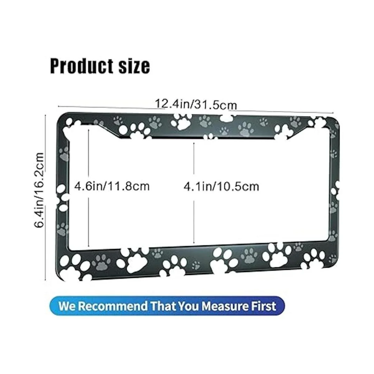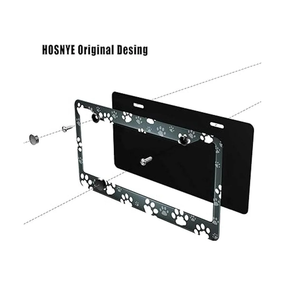 HOSNYE Marco de placa de matrícula con estampado de pata de perro, marco de placa de metal blanco y gris, marco de placa de automóvil para mujeres y hombres, vehículos estadounidenses estándar