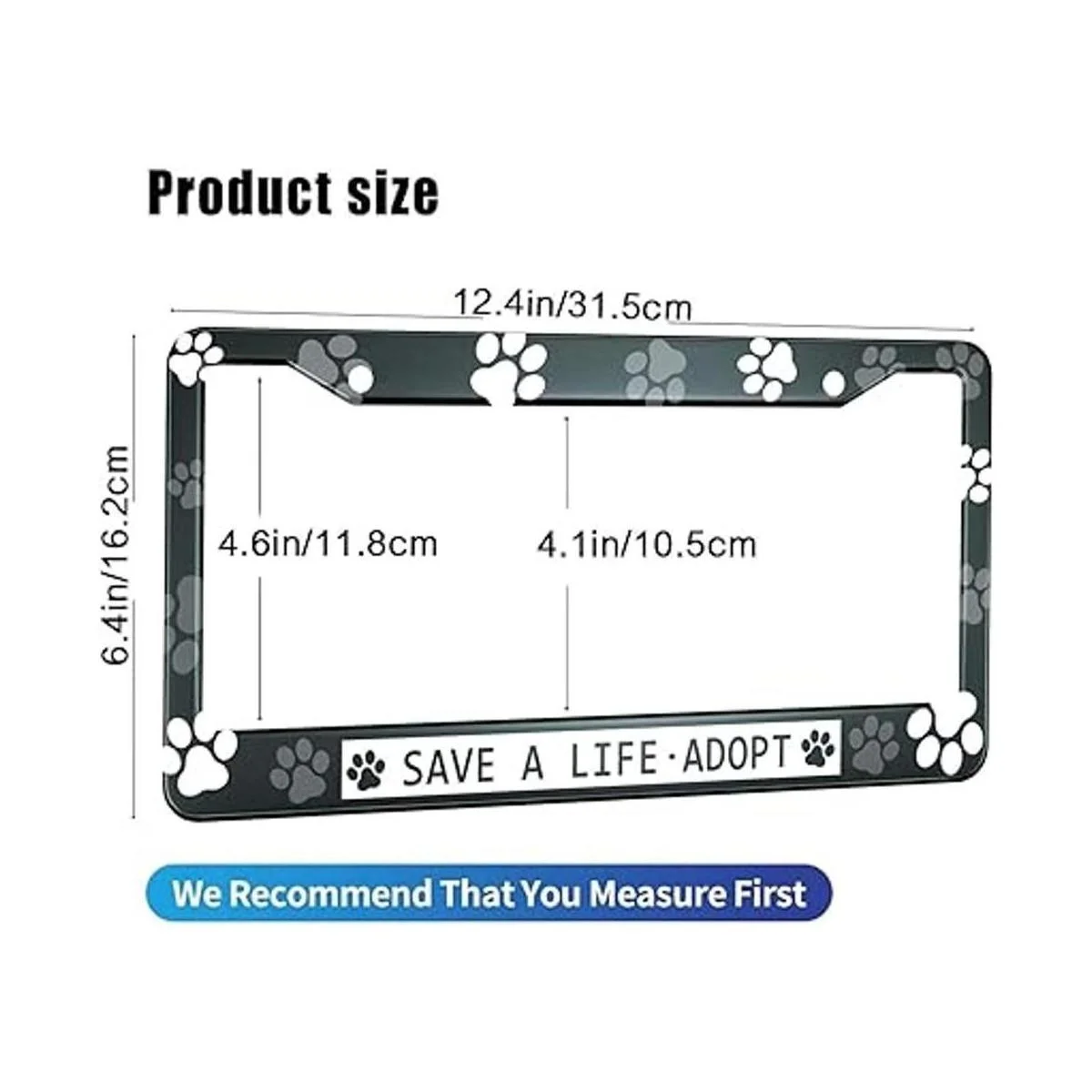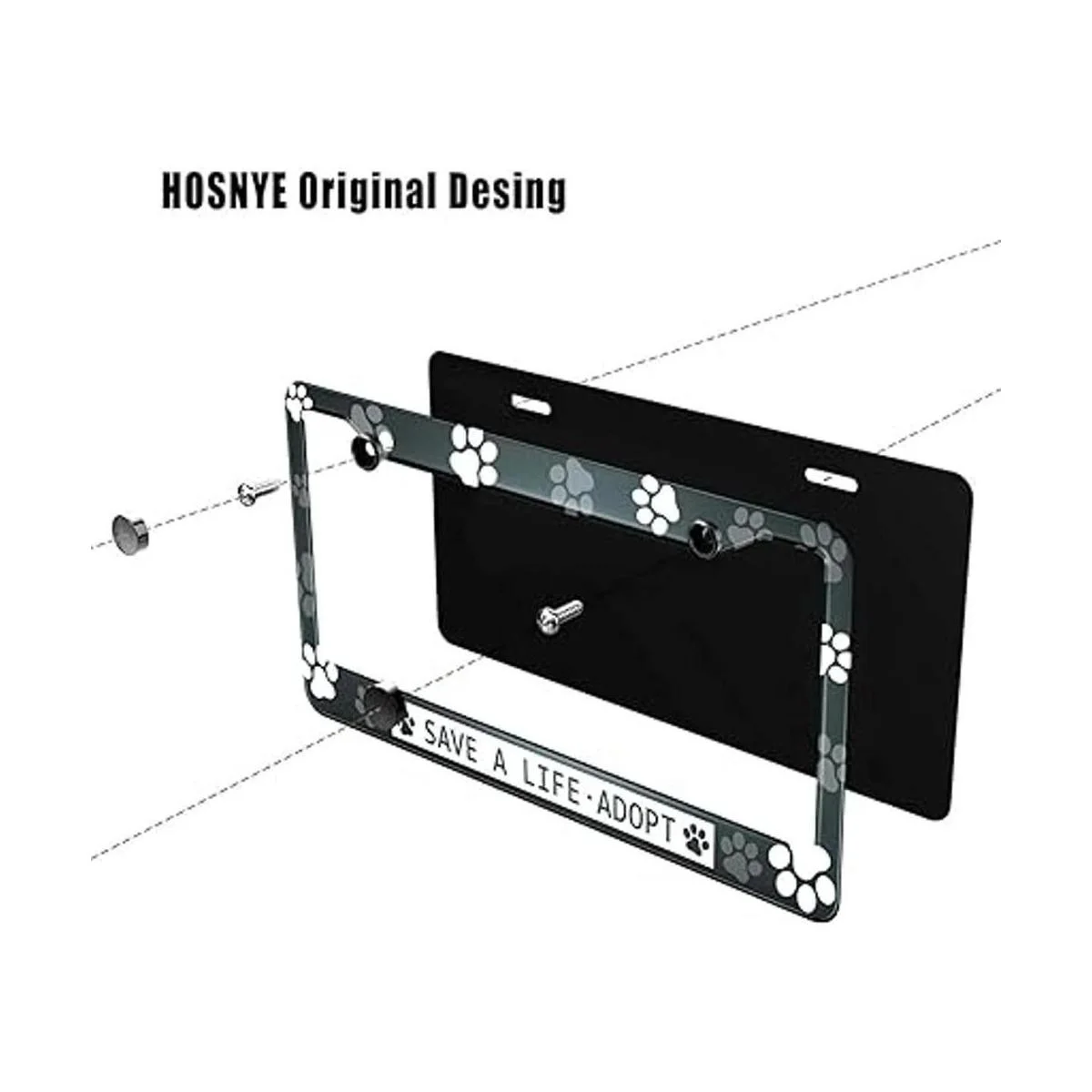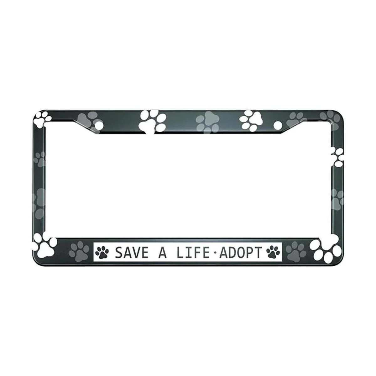 HOSNYE Save A Life Adopt Marco de placa de matrícula en blanco con estampado de patas para perro, gato, cubierta de placa de metal para placas delanteras, marco de etiqueta de automóvil para mujeres y hombres, vehículos estadounidenses estándar