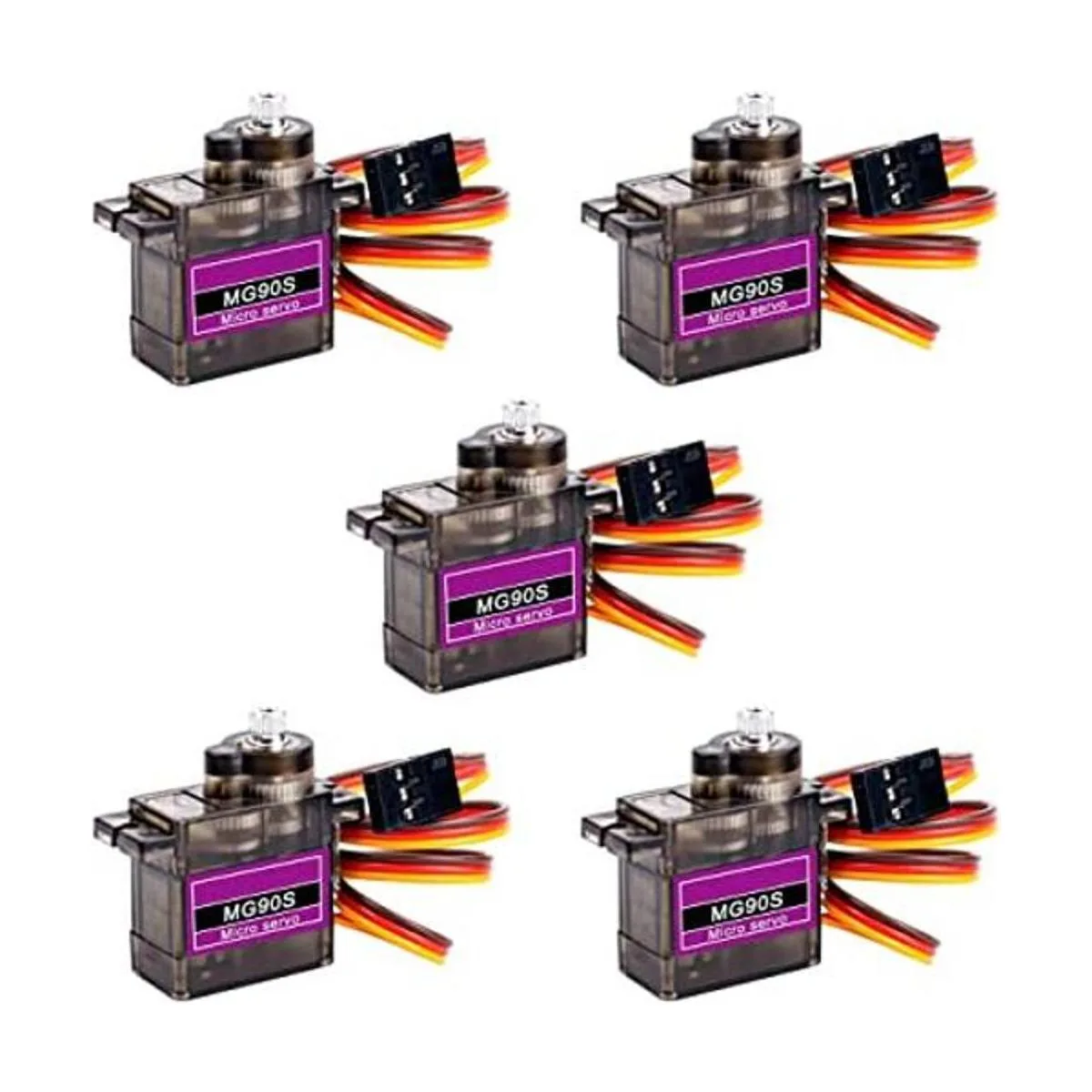 Hosyond Paquete de 5 microservos MG90S 9G engranajes de metal mini servomotor para RC Robot Helicóptero, Avión, Barco Control Remoto, Juguetes, Compatible con Arduino Project Car
