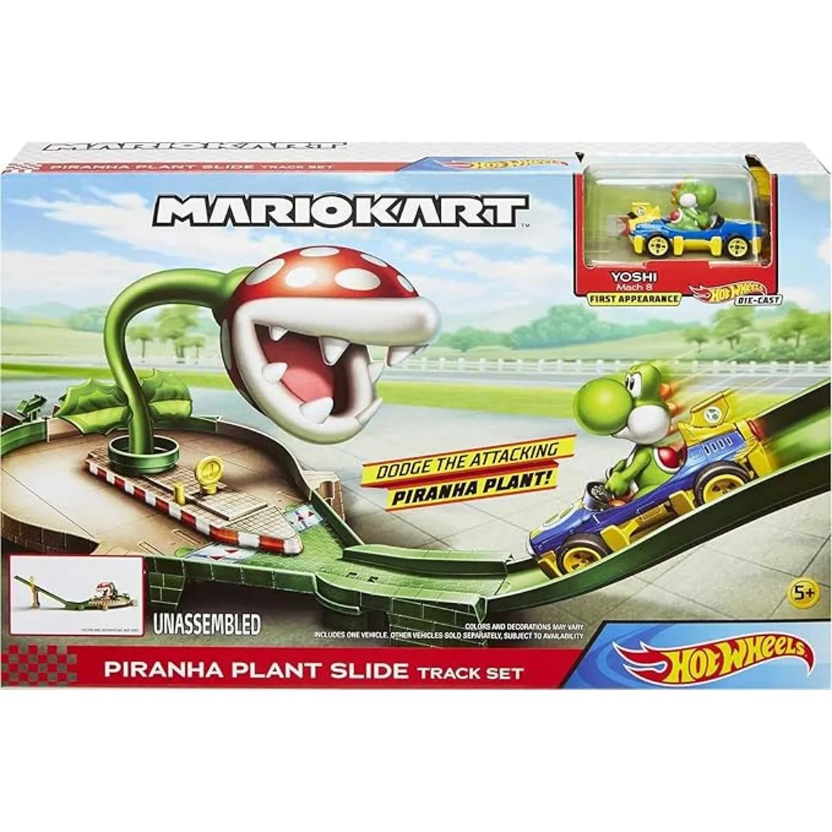Hot Wheels Mario Kart Piranha Plant Slide Track con vehículos Mario Kart escala 164 y némesis de videojuegos regalo para niños de 3 años en adelante