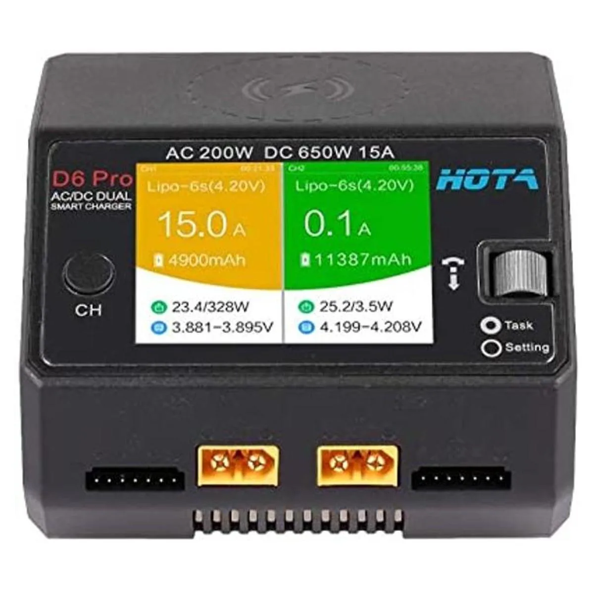 HOTA D6 Pro Lipo Cargador AC200W DC650W 15A para LiHv Nicd NiMH Lipo Batería con Balance Teléfono Carga Inalámbrica RC Coche Drone Piezas