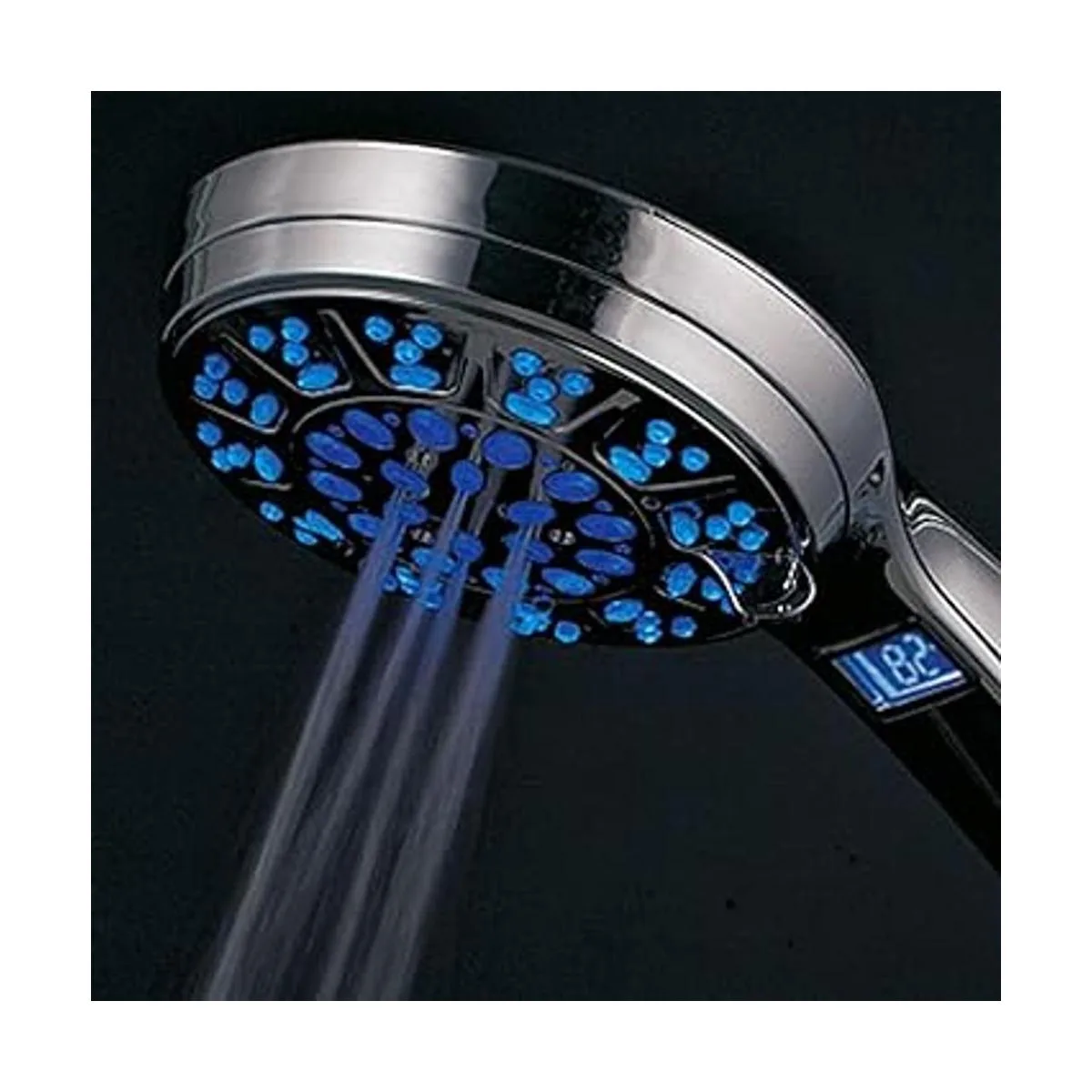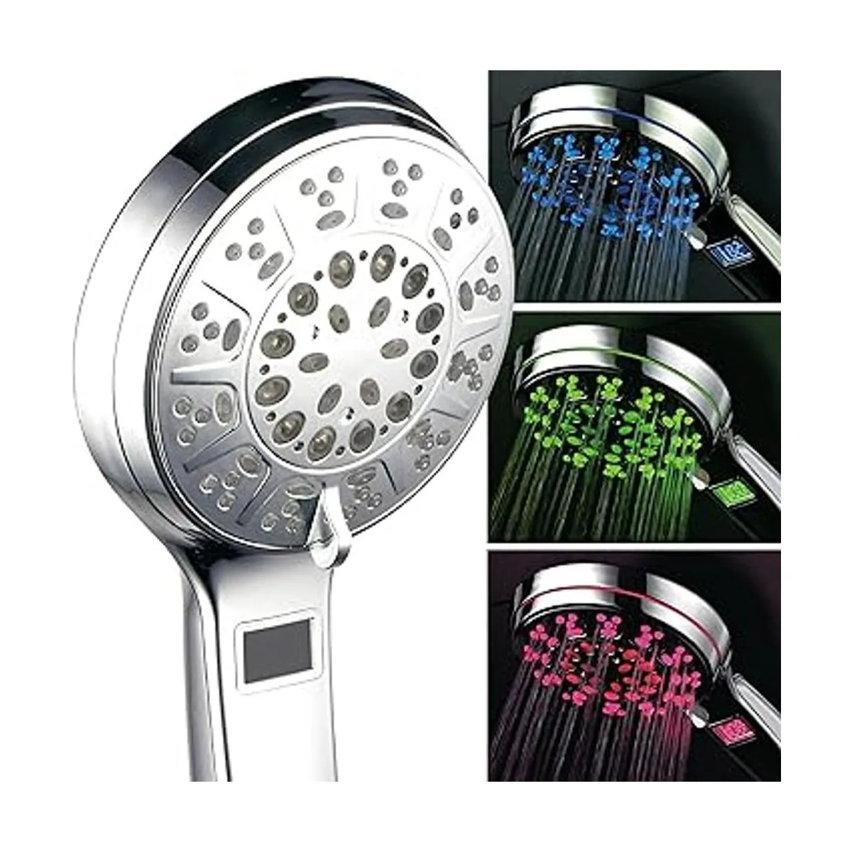 HotelSpa, cabezal de regadera portátil de cromo LEDLCD con 5 funciones y visor LCD de temperatura en parte superior. El mejor fabricante El color de las luces LED cambia automáticamente según la temperatura del agua.