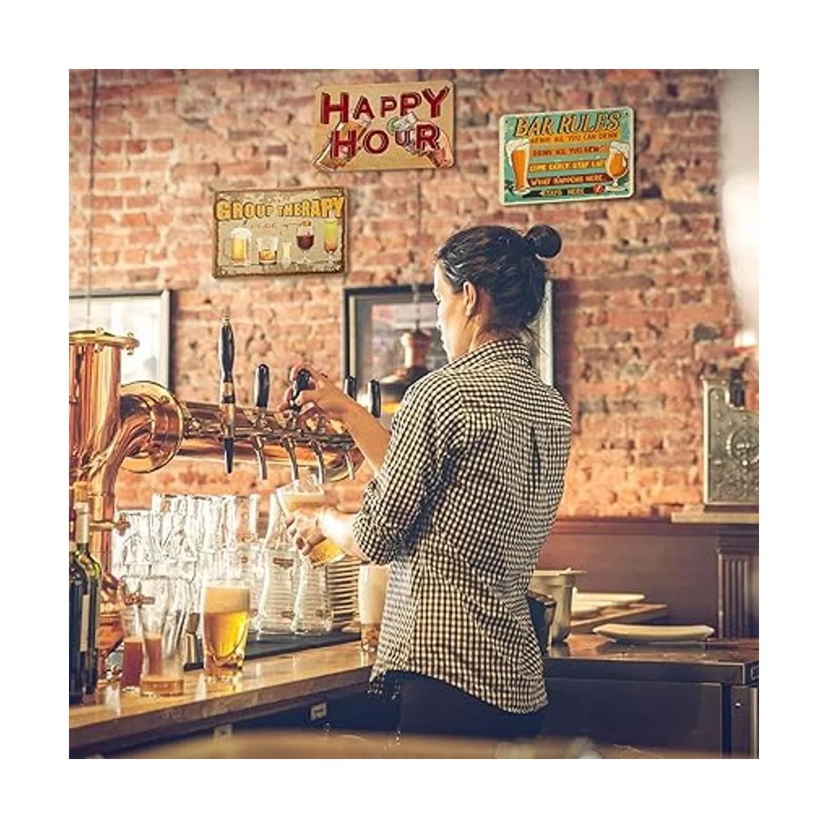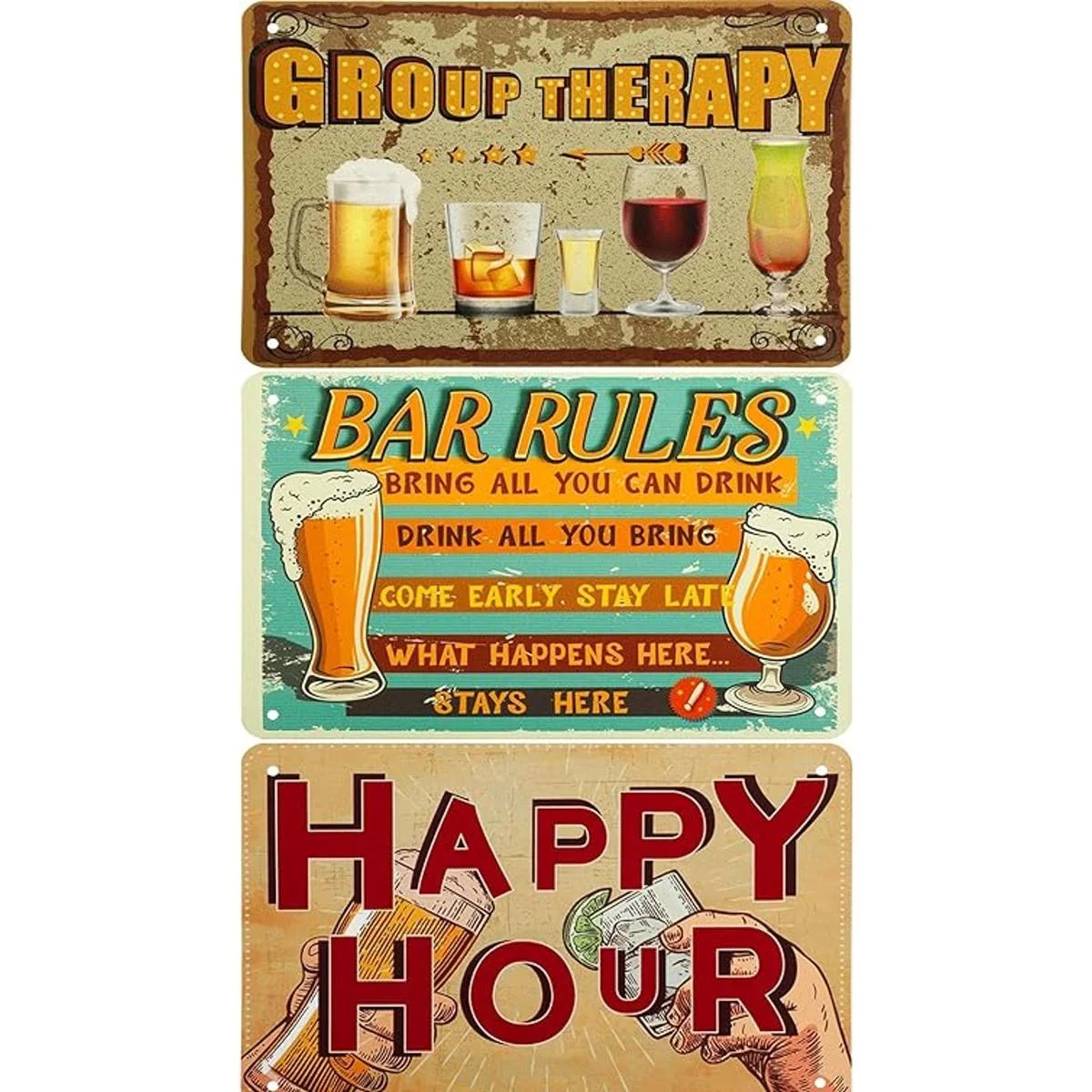 Hotop 3 piezas de diseño rústico retro vintage con reglas de bar, letreros artísticos, letrero de estaño de metal, impresión de hojalata, decoración de pared para el hogar, bar, pub, restaurante pequeño