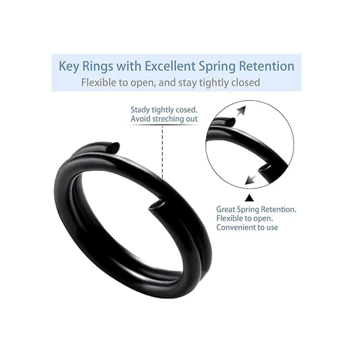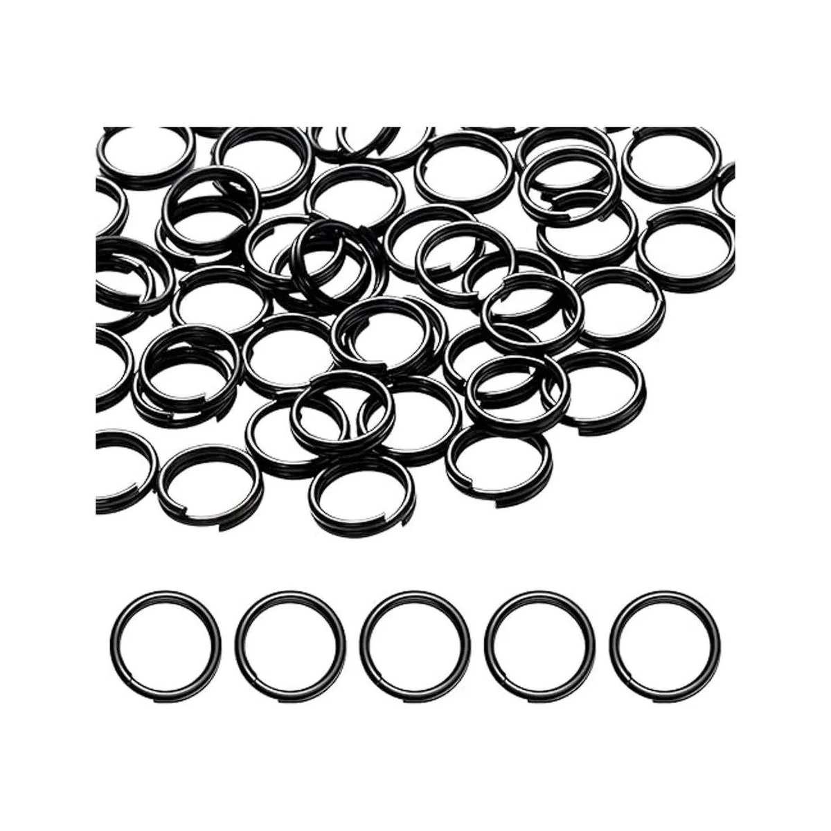 Hotop 50 anillos divididos negros de 0.394 in de metal redondos pequeños llaveros para organización de llaves, accesorios de manualidades