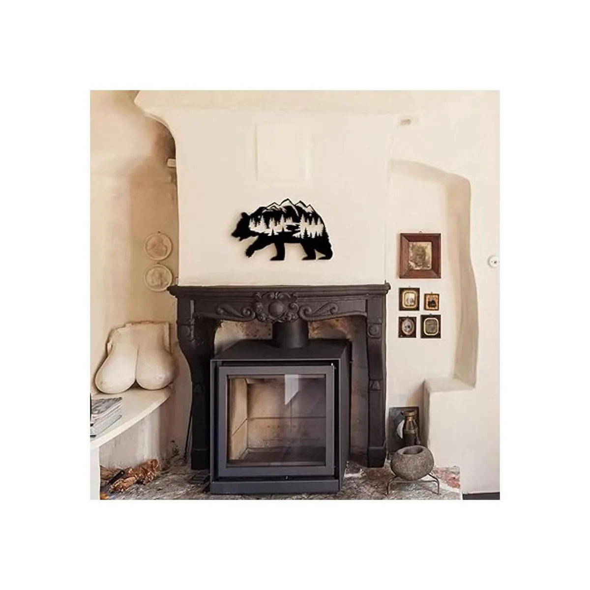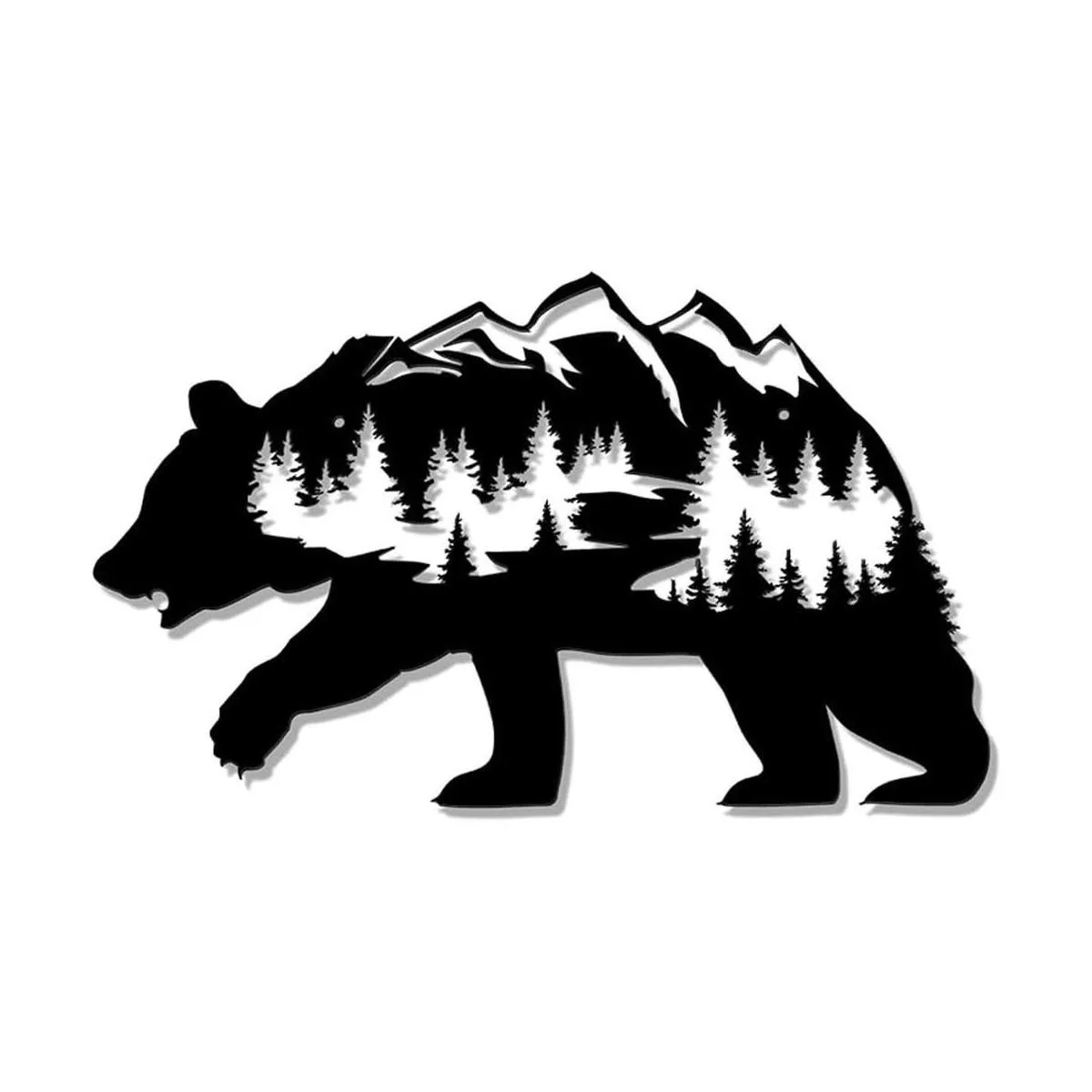 Hotop Arte de pared de oso de metal rústico para decoración de pared de bosque, oso de metal, arte de pared silvestre, decoración de pared de oso, decoración de bosque de metal para sala de estar, dormitorio, suministros de decoración de interiores, 14 x 8.5 pulgadas negro