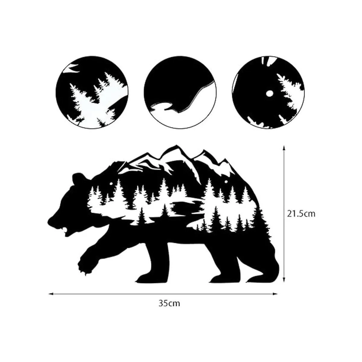 Decoración elegante para el hogar: nuestro arte de pared de oso de metal está diseñado con patrón de oso en la superficie en colores clásicos, la exquisita tecnología de corte láser de esta decoración de pared de metal hace que los árboles y el oso se vean realistas