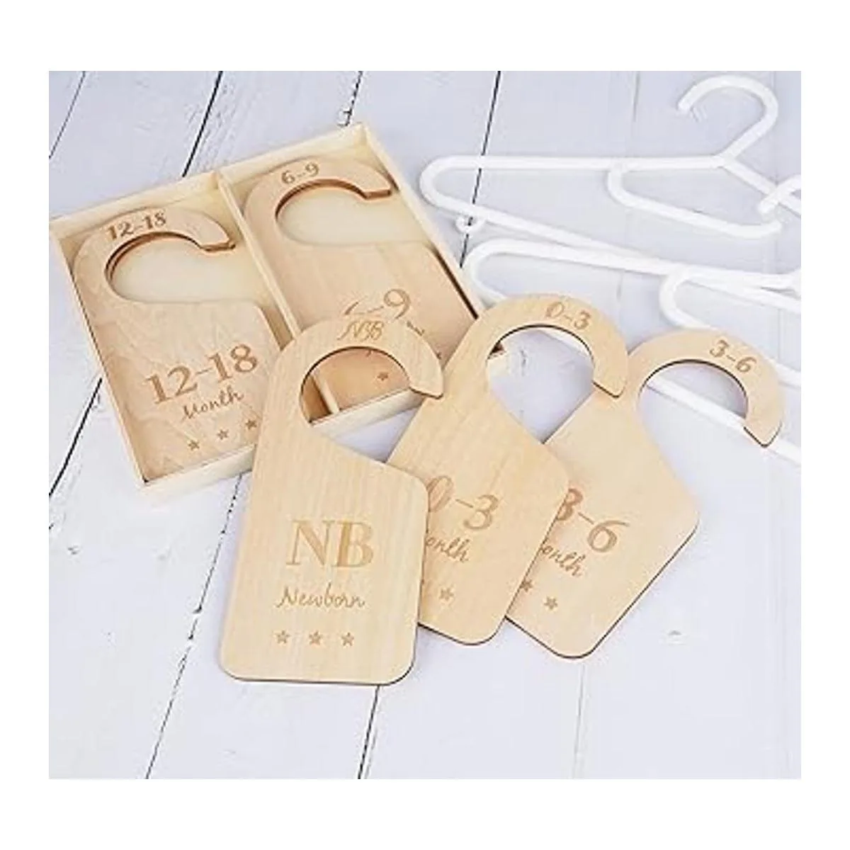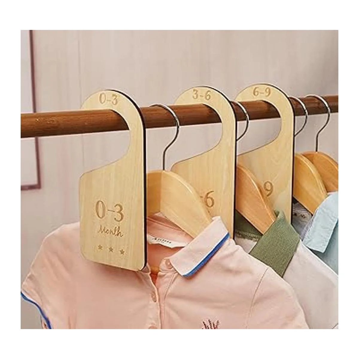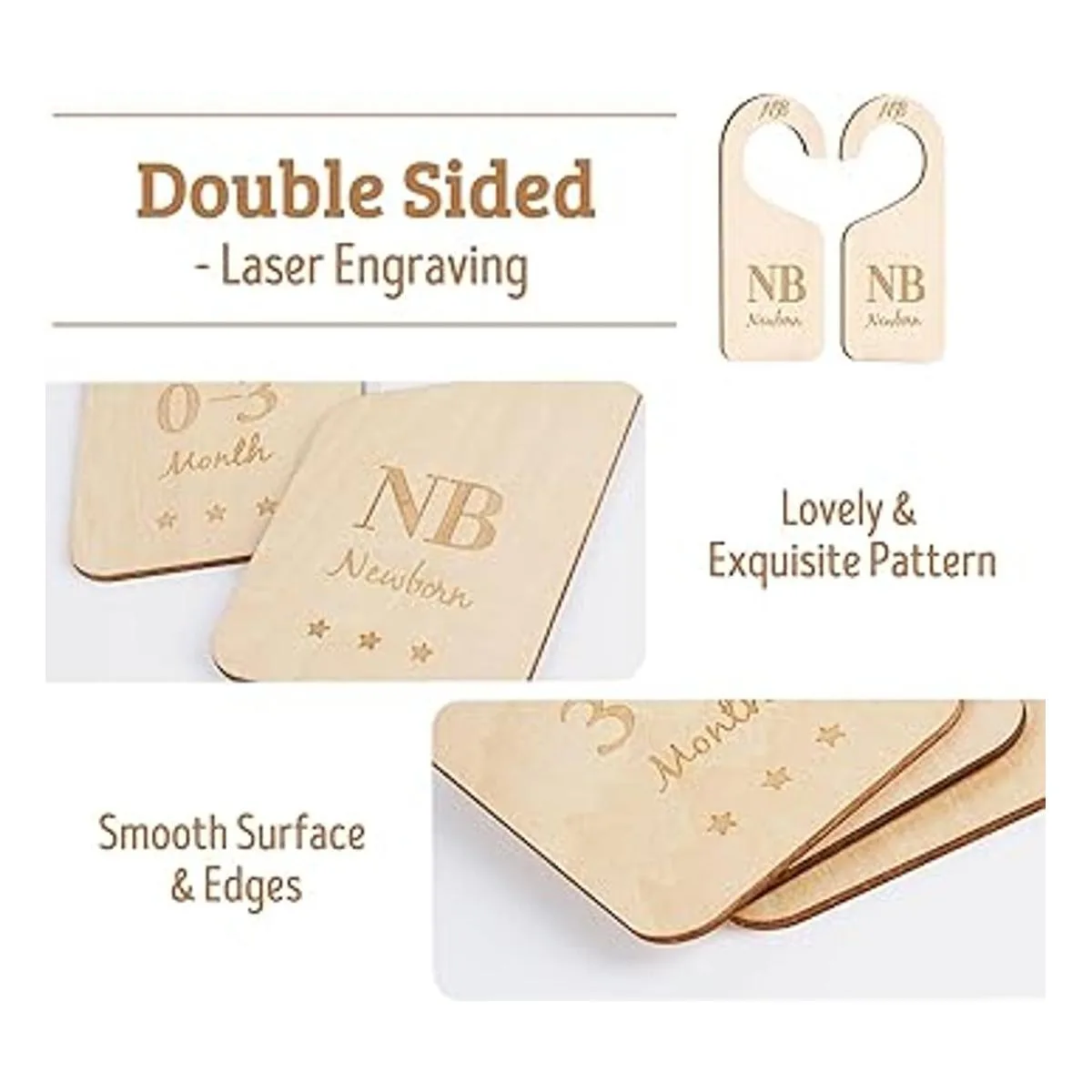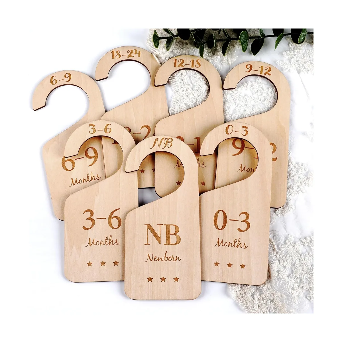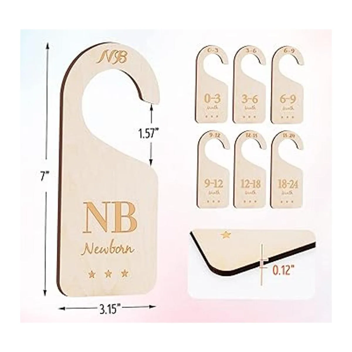 HOUSM Juego de 7 separadores de madera para armario de bebé, organizadores de ropa de bebé, decoración del hogar, habitación de bebé, gruesos y de doble cara desde recién nacidos hasta 24 meses, separadores colgantes de armario para baby shower recién nacido