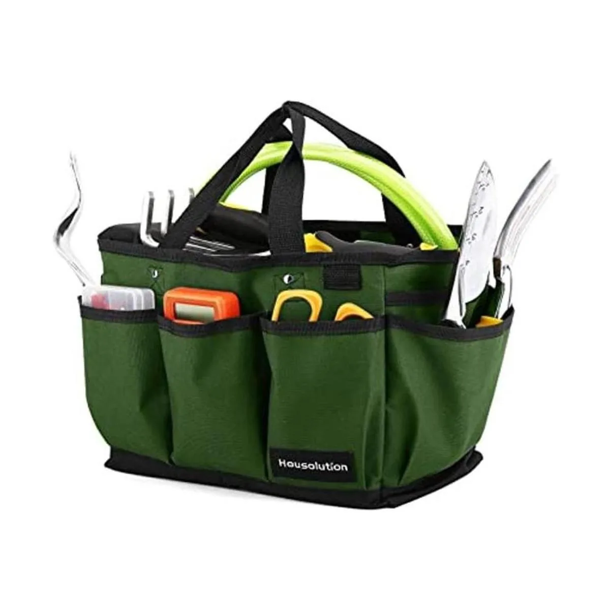 Housolution Bolsa de mano de jardinería, bolsa de almacenamiento de herramientas de jardín de lujo y organizador del hogar con bolsillos, resistente al desgaste y reutilizable, 12 pulgadas, verde oscuro