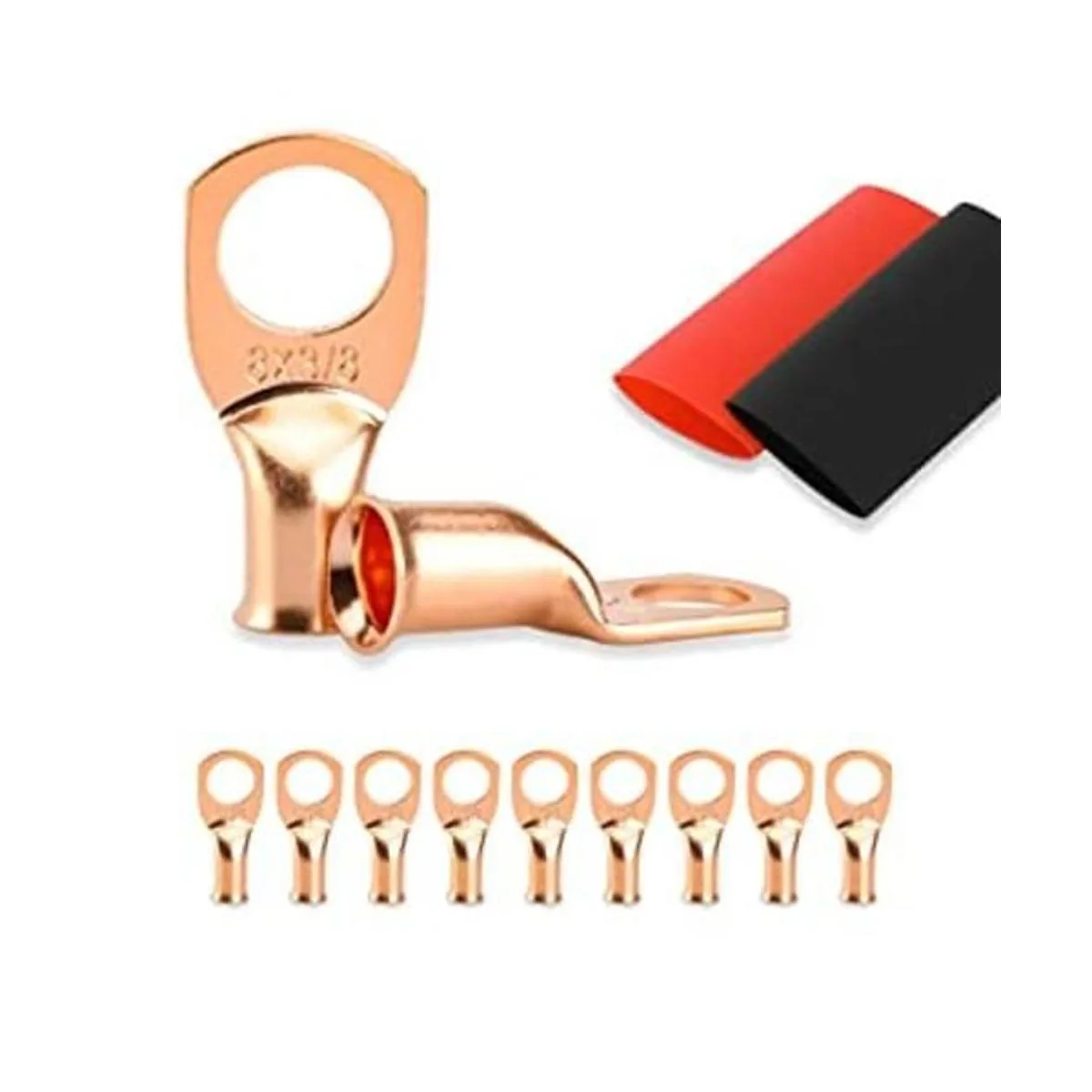 HOUSUN 10 extremos de cable de batería, conectores de alambre de calibre 8, lengetas de alambre de cobre 38, ojales de cobre desnudo con tubo termorretráctil