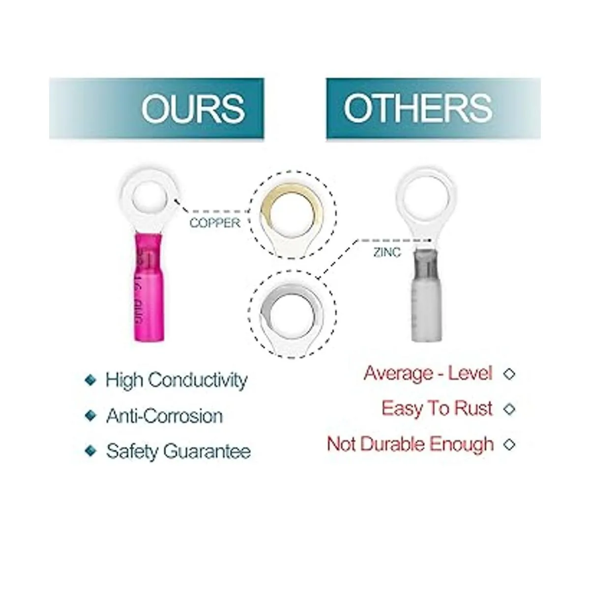 Housun 120 conectores de cable termorretráctil, 22, 20, 18, 16 AWG, 22, 20, 18, 16 conectores de anillo marítimo, calibre 22, 20, 18, 16