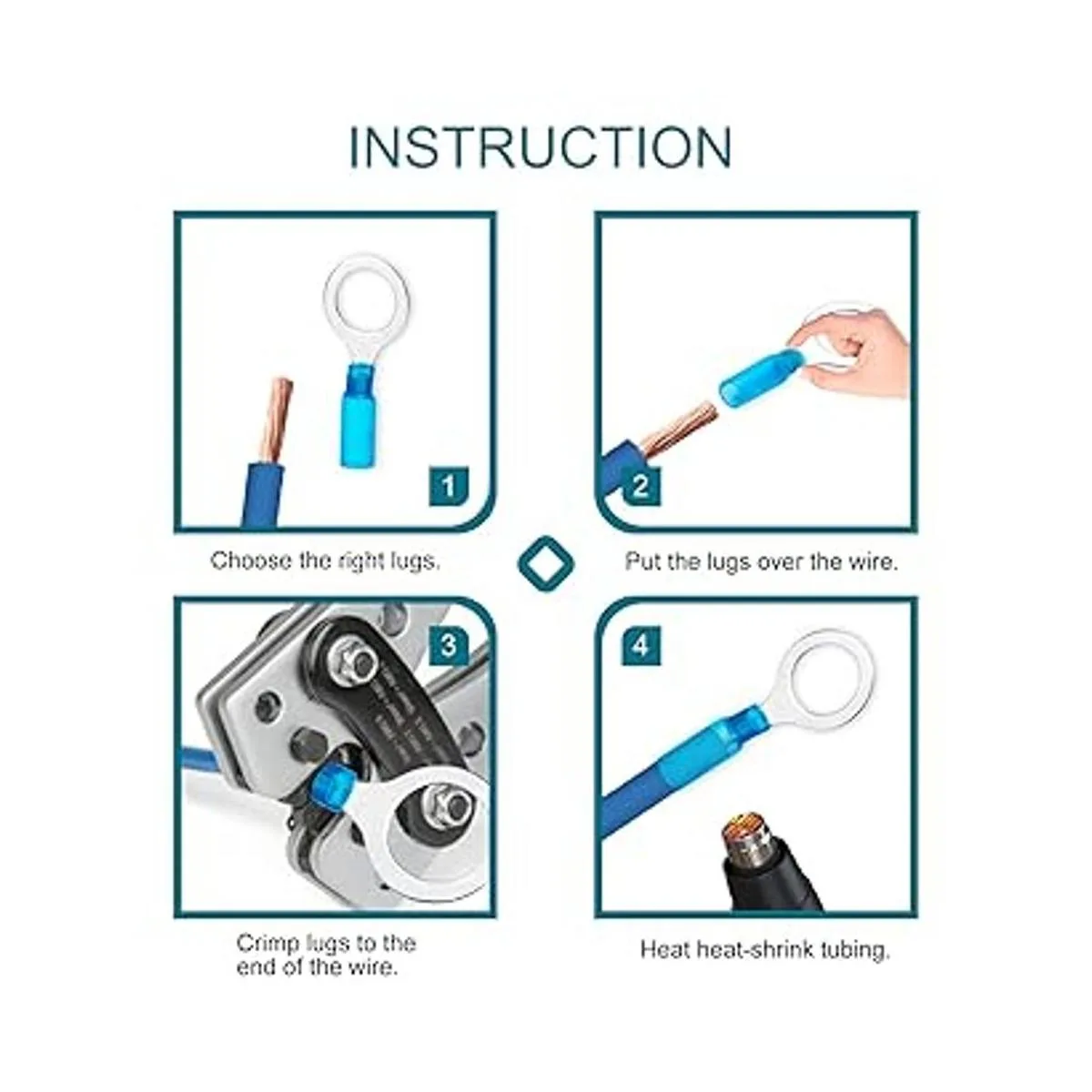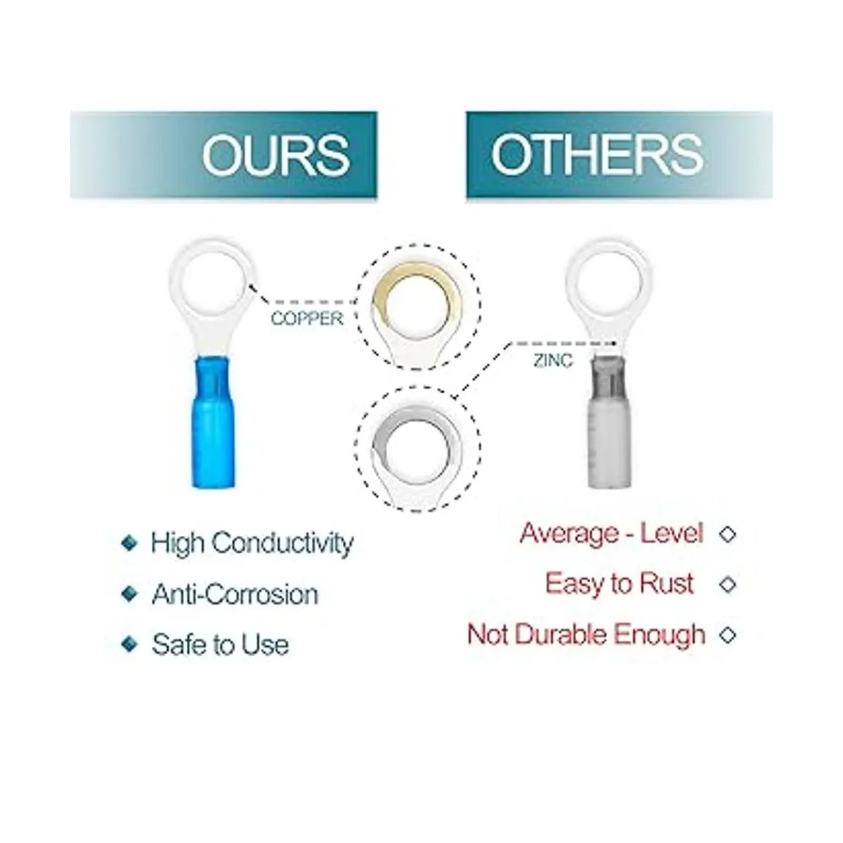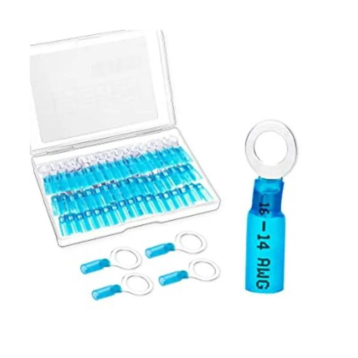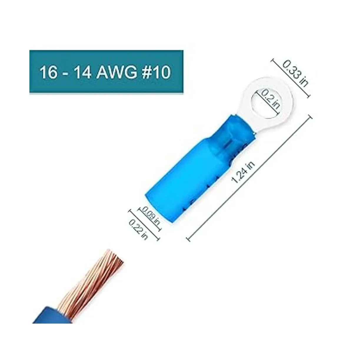Housun 60 conectores de cable termorretráctil, terminales de anillo de 1614 AWG, conectores de anillo marino automotriz calibre 1614 10
