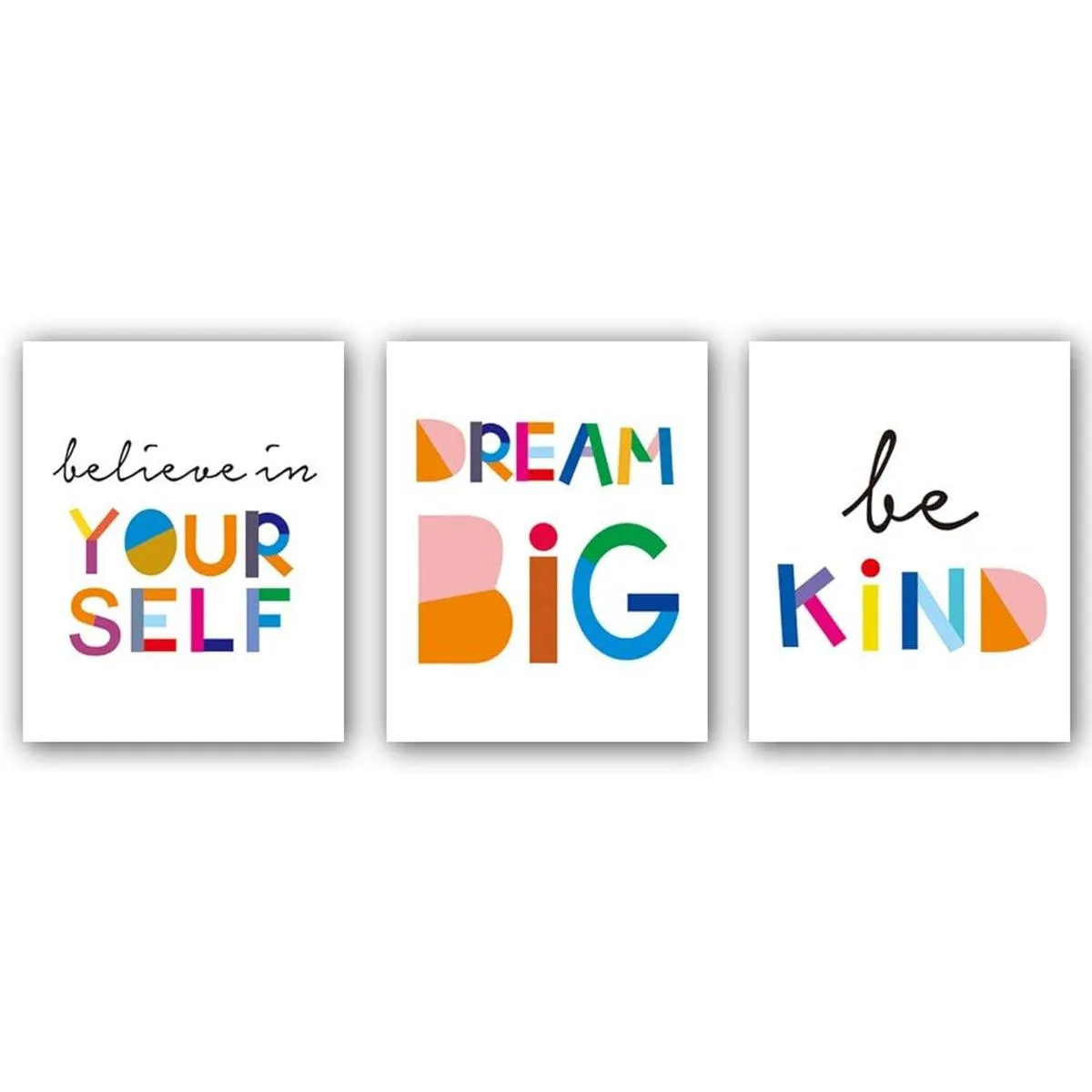 HPNIUB Juego de 3 impresiones artísticas con frase inspiradora en acuarela 8 x 10 pulgadas, pintura en lienzo, frases motivacionales, póster artístico para guardería o habitación de niños, decoración de sala de juegos, sin marco