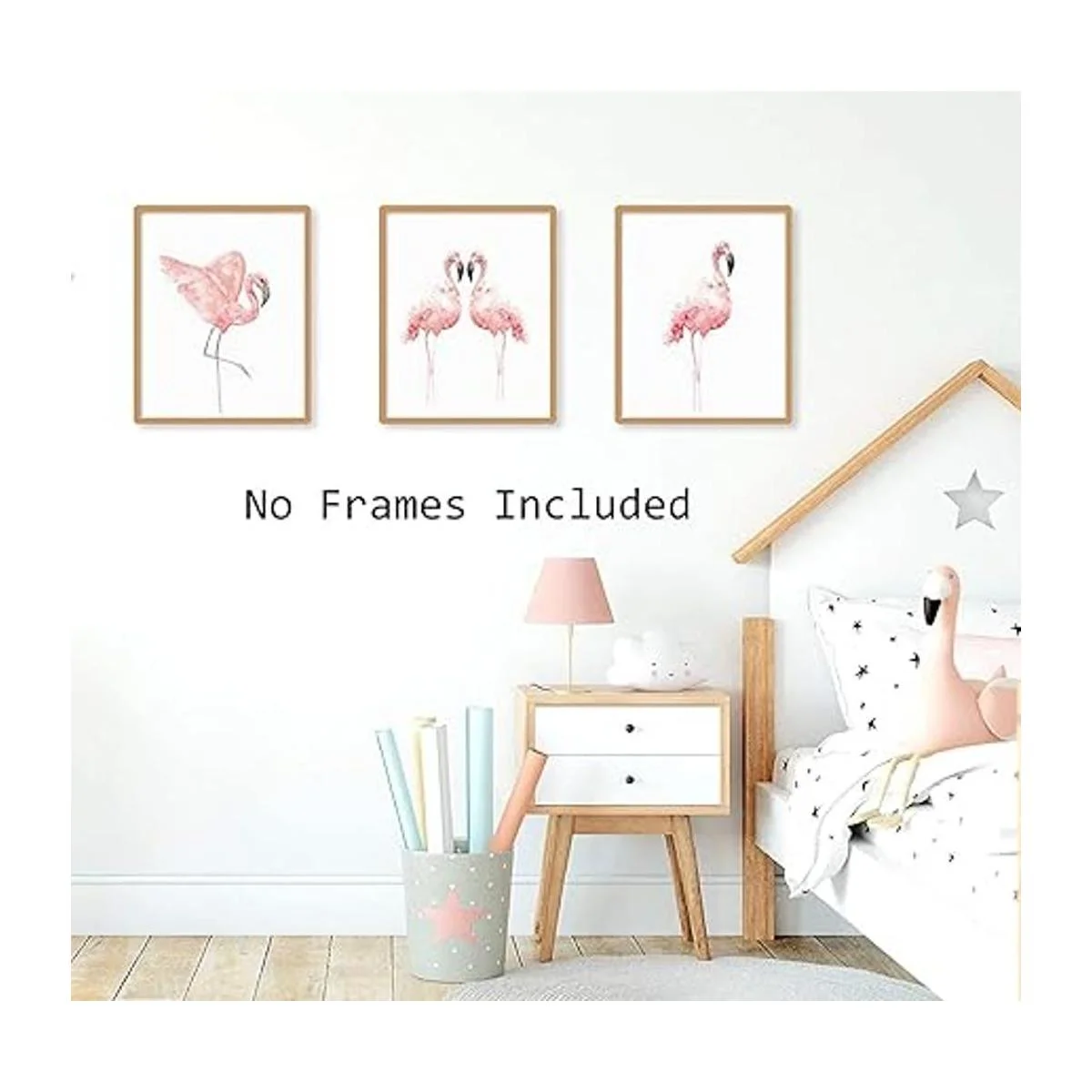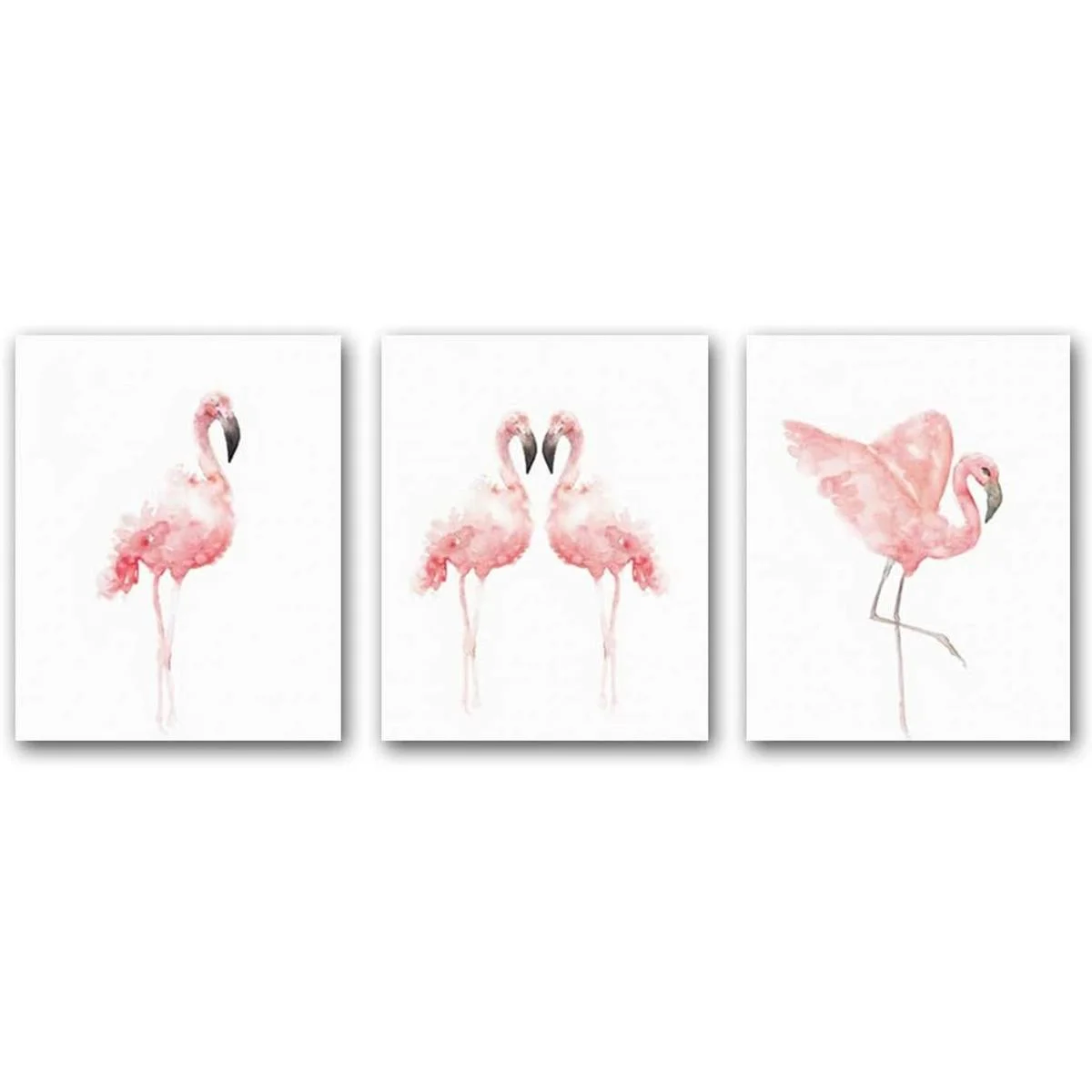 HPNIUB Juego de 3 impresiones artísticas de pared de flamenco nórdico lienzo de 8 x 10 pulgadas, pintura de animales, decoración moderna de pared para guardería, cafetería, sin marco
