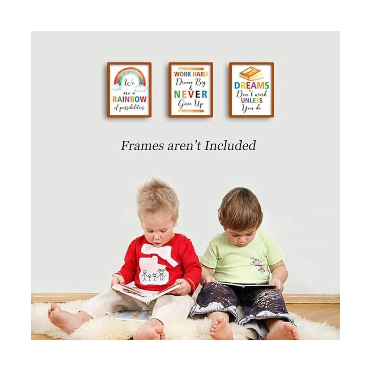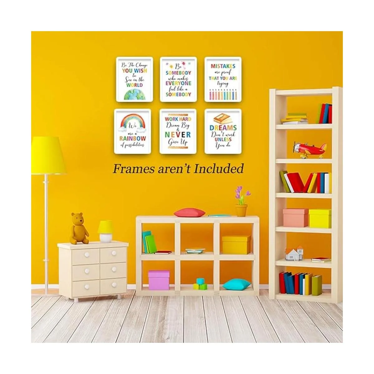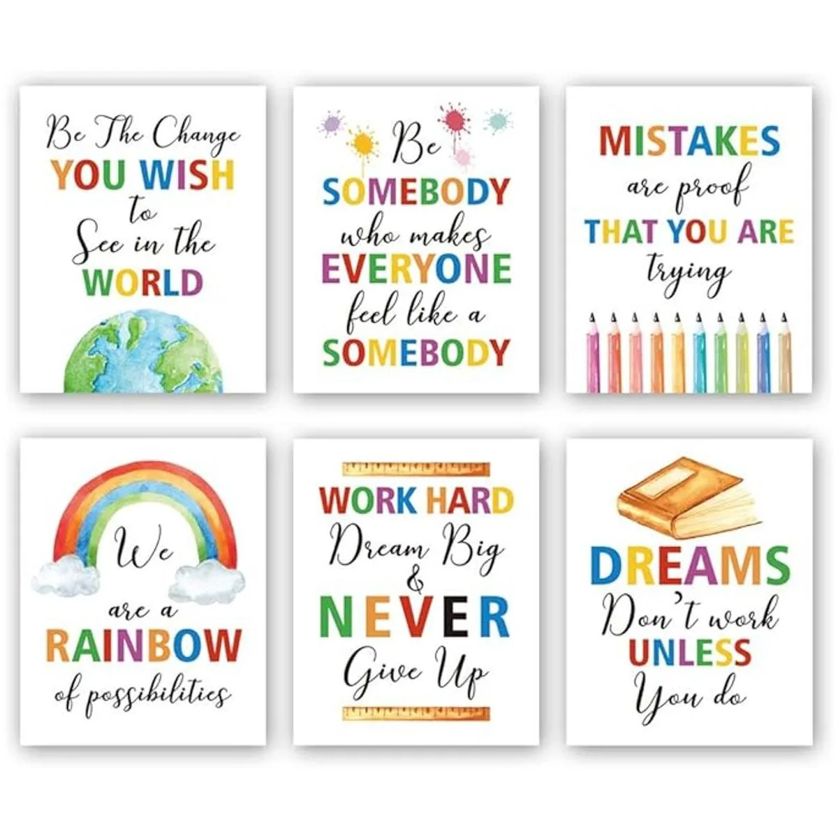 HPNIUB Juego de 6 impresiones artísticas de palabras coloridas 8 x 10 pulgadas, citas inspiradoras, póster en lienzo con frases motivacionales, diseño de tinta de crayón del mundo del arco iris, arte de pared para guardería, aula, sala de juegos de niños, sin marco