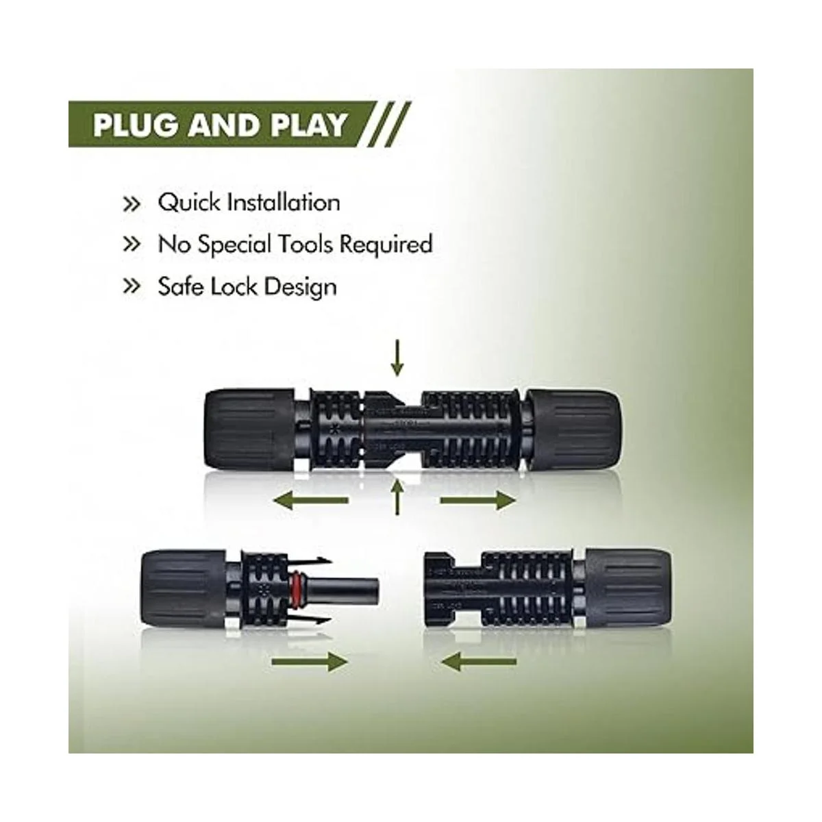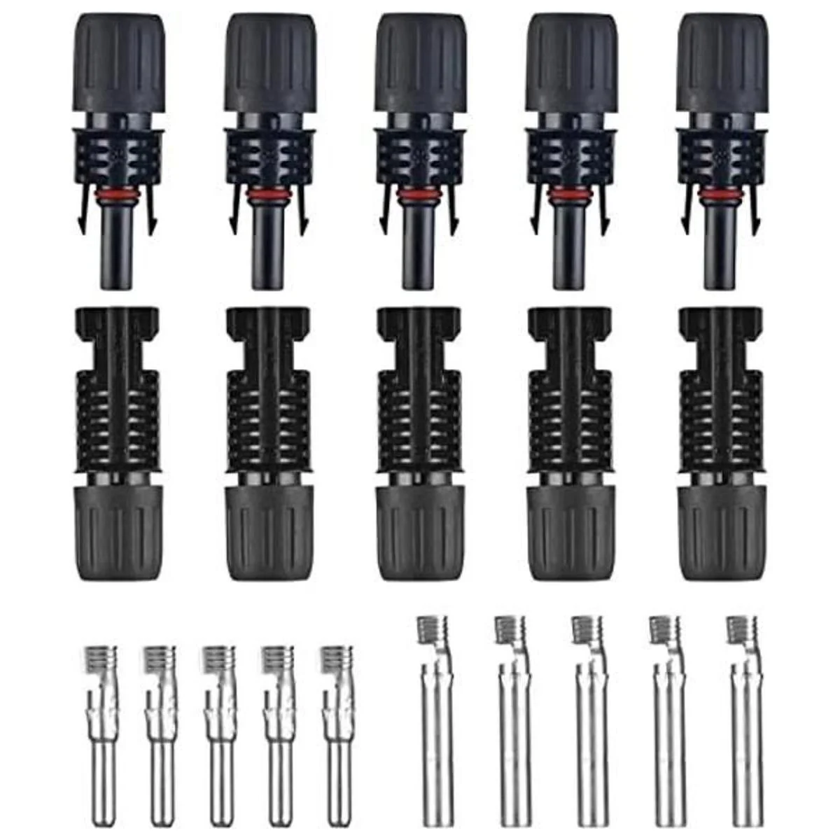 Package Included: 5 pairs solar panel connectors 5pcs male and 5pcs female.