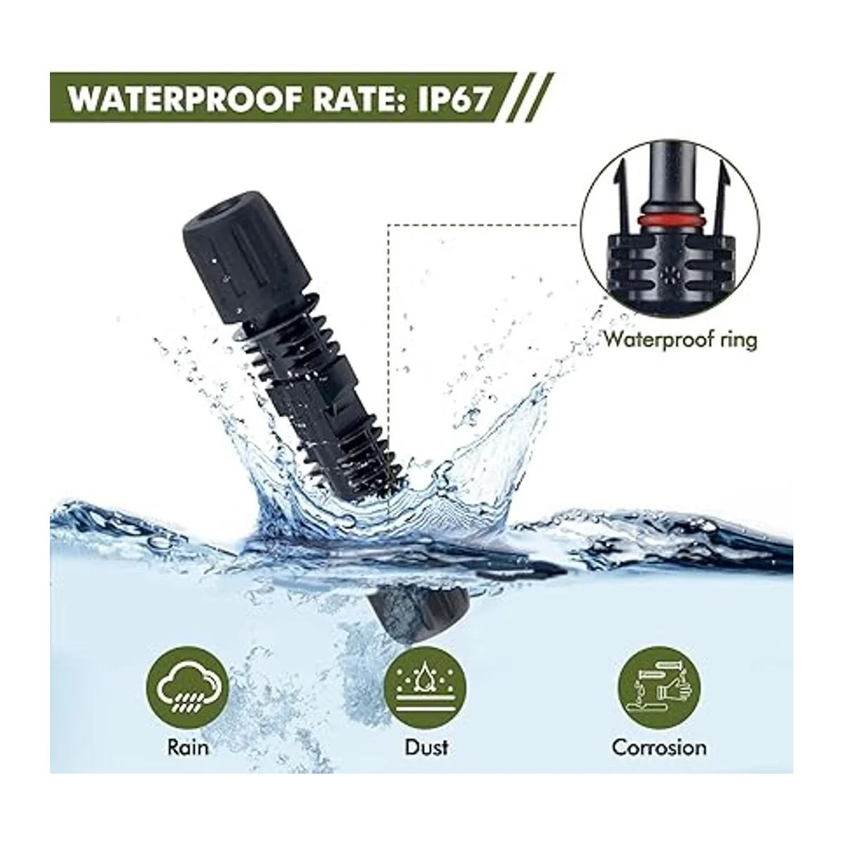 IP67 Waterproof: IP67 waterproof solar panel connectors with Waterproof and Dustproof Seal ring are suitable for outdoor use.