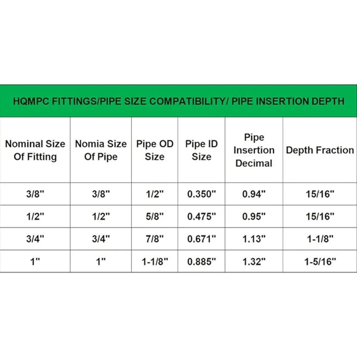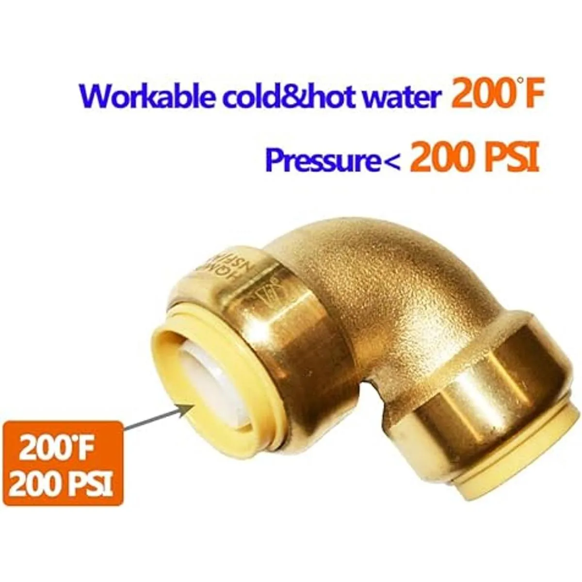Certificación: certificado a presión y cumple con Fititng, UPC, ANSI/NSF61, los accesorios de ajuste a presión pueden soportar hasta 200 PSI y 200 F
