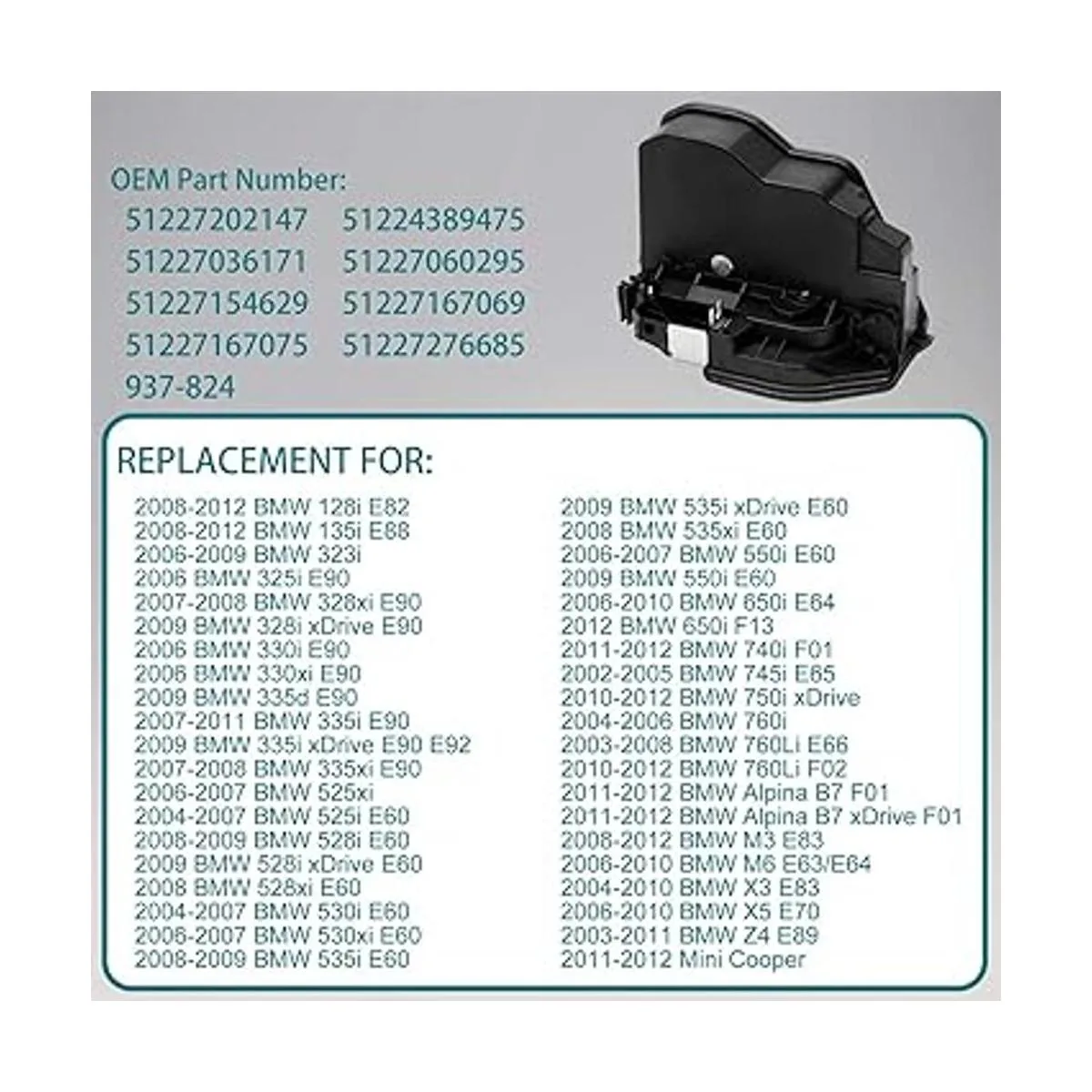 HQPASFY Cerradura de puerta eléctrica trasera izquierda de repuesto para BMW E60, E65, E70, E90, E92 1, 3, 5, 7 M, N, X3, X5, Z4 y más reemplaza 51227202147