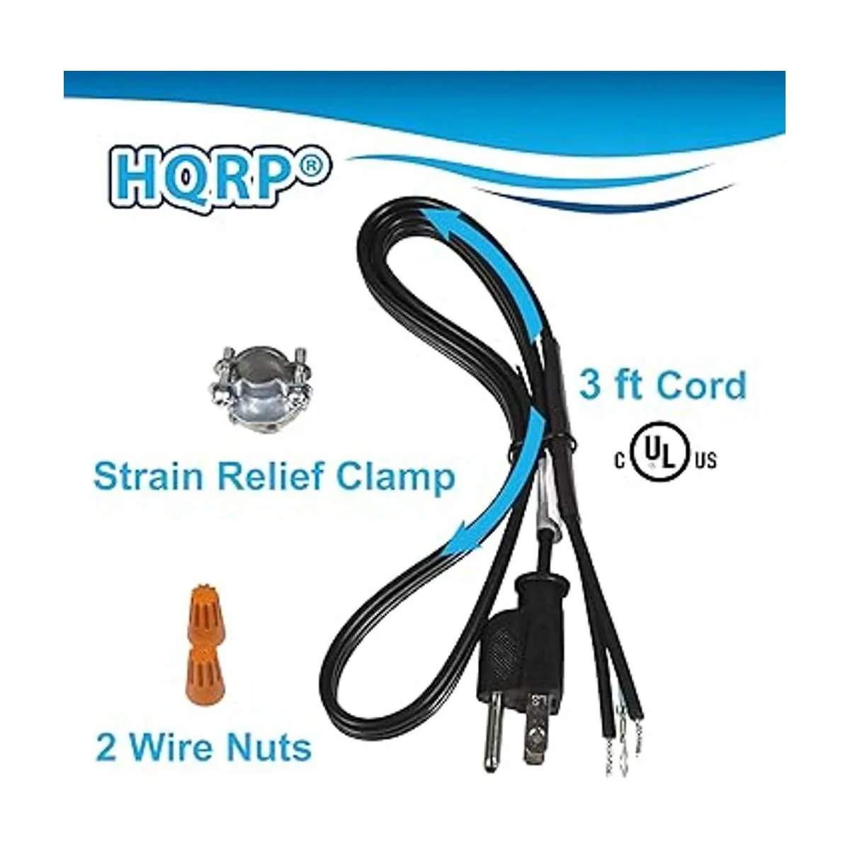 HQRP Kit de cable de alimentación de eliminación de basura compatible con InSinkErator CRD00 Badger, compacto, CoverControlPlus, Essential, Excel, Select, Select Plus, asistencia séptica, SupremeSS, 16AWG, 3 pies, certificación UL