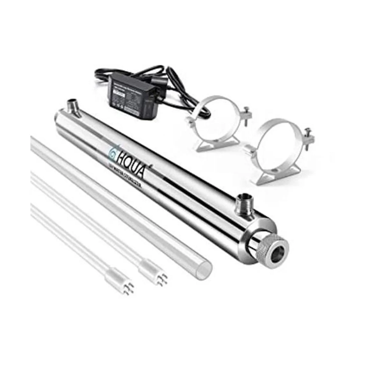 HQUA OWS6 Filtro esterilizador de purificador de agua ultravioleta para purificación de agua de cocina, 6 GPM, 110 V, 25 W, modelo HQUAUV6 GPM 1 tubo UV adicional
