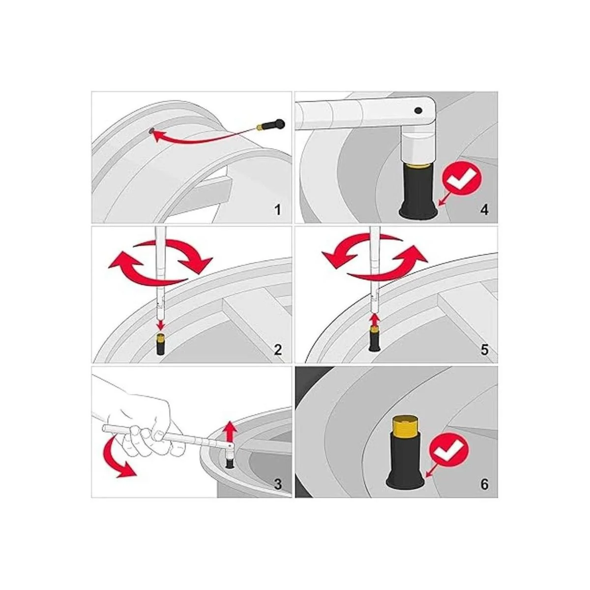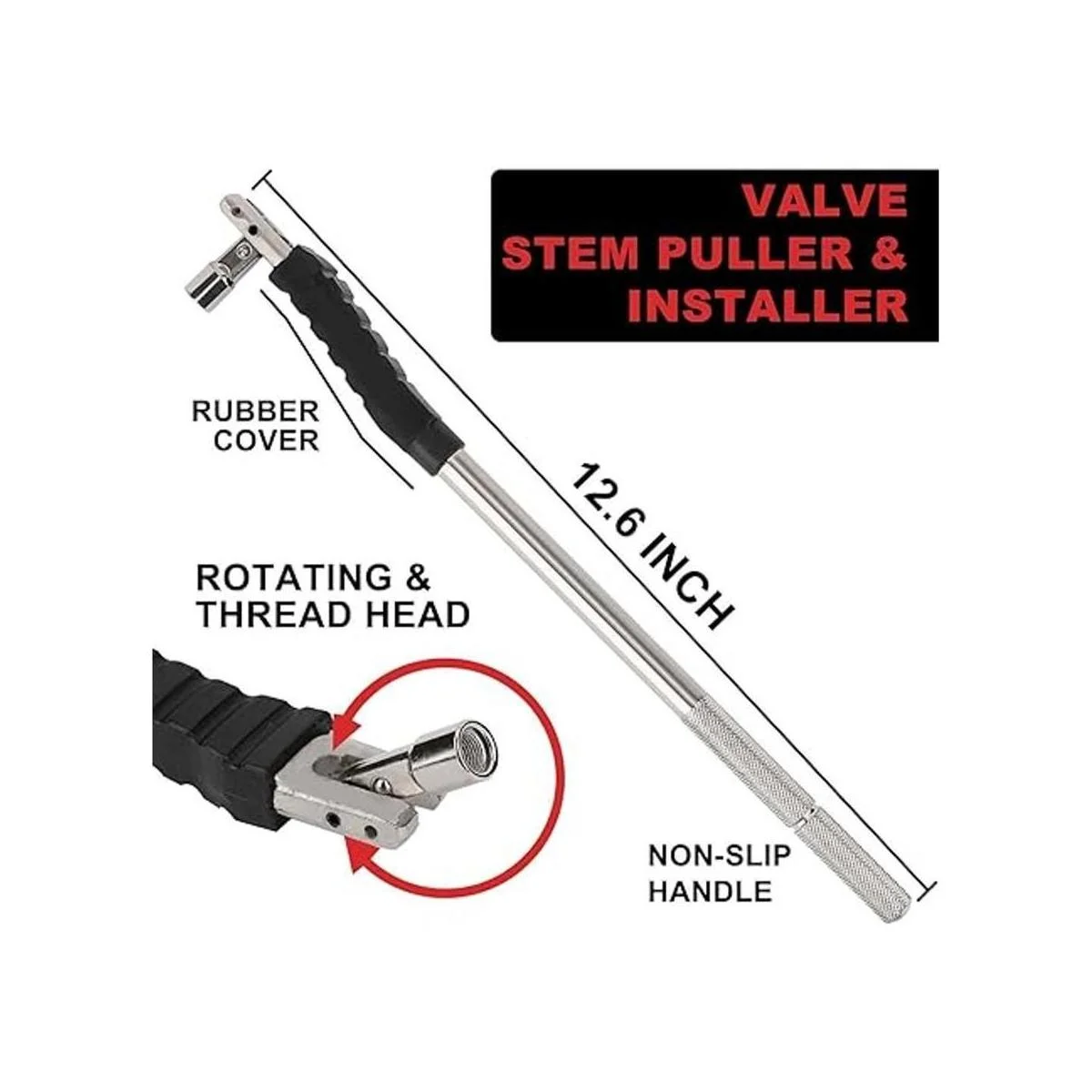 Diseño protector: en la parte del mango el acero con acabado moleteado está diseñado para aumentar la fricción y garantizar la seguridad mientras se utiliza. El parachoques de goma es para proteger la rueda y la llanta de daños. 12.6 pulgadas de largo para proporcionar más apalancamiento necesario para quitar los vástagos de válvula difíciles con menos esfuerzo. Este extractor e instalador definitivamente un buen ayudante para cambiar el vástago de la válvula.