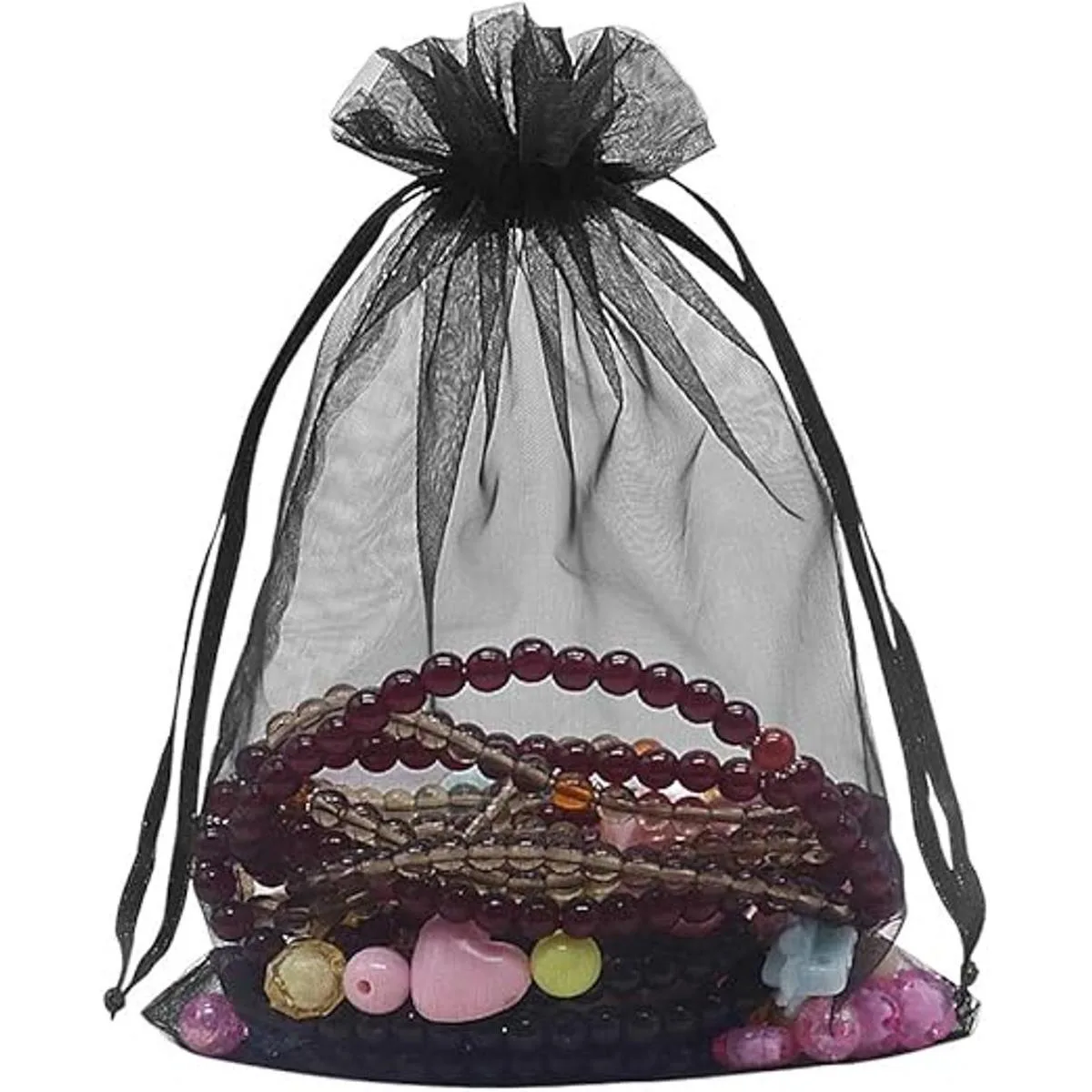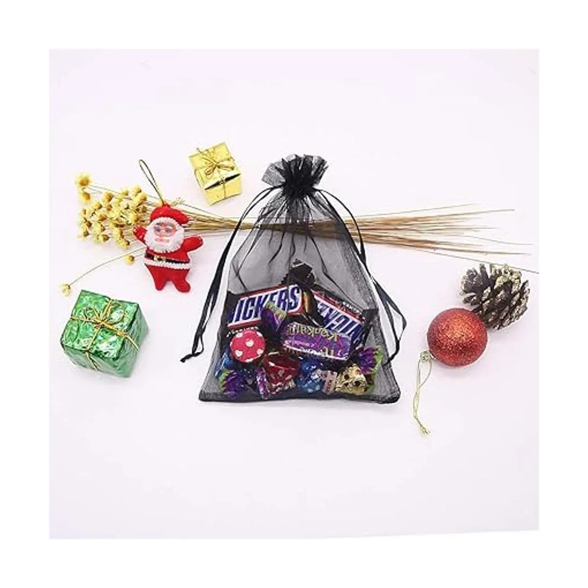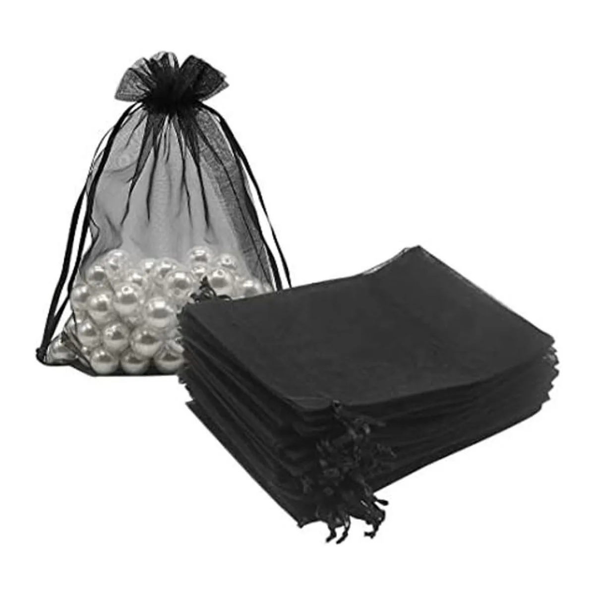 HRX Paquete de bolsas de regalo de organza , color negro, de 5 x 7 pulgadas, 100 unidades, bolsas de malla con cordón para caramelos, joyería, bolsas vacías para regalos promocionales, presentes de bodas.