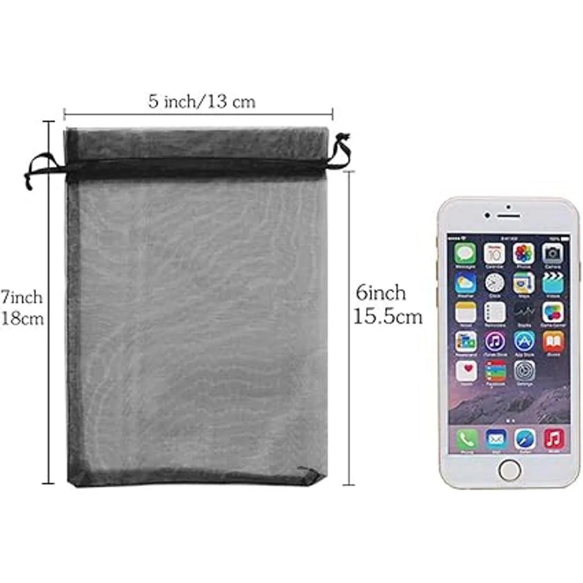 Material de alta calidad: estas bolsas de organza negra de 5 x 7 pulgadas están hechas con organza transparente de alta calidad, el cordón de satén hace que las bolsas de organza sean fáciles de cerrar y abrir
