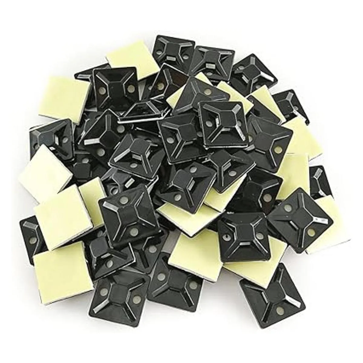 HS Soportes de brida de cables, autoadhesivos con agujero de tornillo, soporte de base de montaje de brida de alambre paquete de 100 unidades, cuadrados de 1 x 1 pulgada, negro